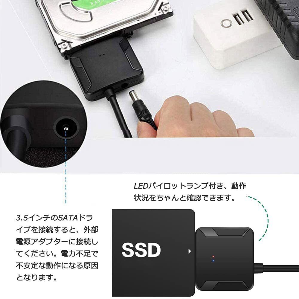 【2.5/3.5インチ HDD/SSD対応】最大6TBまでの大容量2.5/3.5インチのSATAハードデイスクやSSDを、USB3.0接続ハードディスクに変換できるアダプタです。SATA / SATA2.0 / SATA3.0のインタフェース対応できます。USB3.0接続、5 Gbpsのスピードに達することで、高速回転のハードディスクやBlu-ray書き込みドライブなどの能力を最大限に発揮します。ご注意:消費電力の大きい機器(3.5インチハードディスクドライブ)を接続する場合は、12V電源アダプタが必要です。 この商品には電源アダプターは付属していませんので、別途お買い求めください。
