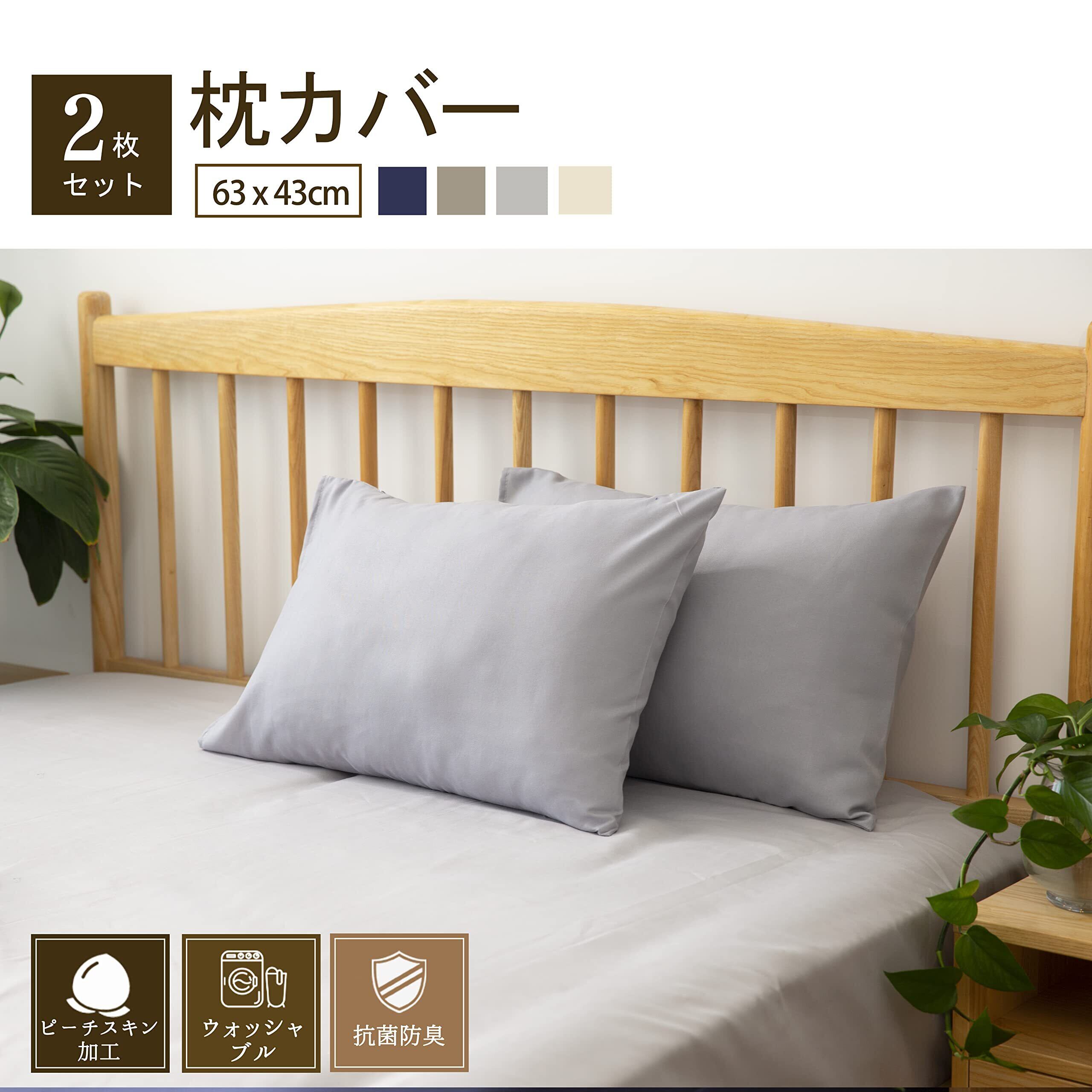 枕カバー 43×63cm 2枚セット 吸湿速乾 オールシーズン 抗菌防臭 合わせ式 ピロケース まくらカバー ライトグレー