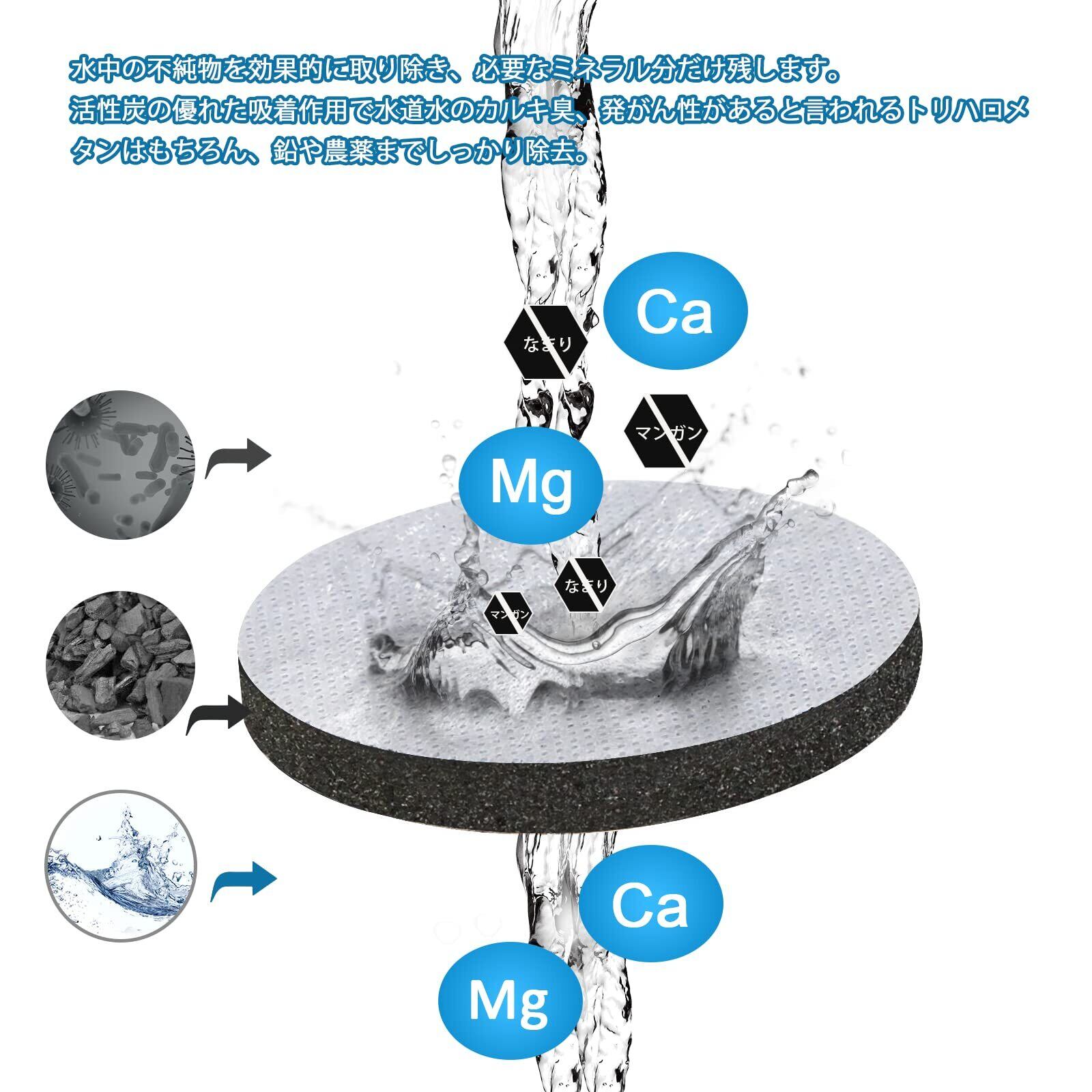 浄水性能アップ:15項目の浄水能力をクリア。カートリッジの活性炭は天然のココナッツの殻素材を採用されて、無害で環境に優しいグリーン食品レベル材質で作られている。 活性炭と不織布は、塩素や塩素化合物など、水の味を損なう可能性のある物質を除去。