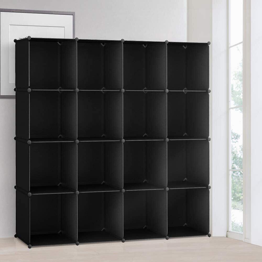 【2022最新】Vacplus 収納棚 大容量 収納ラック 組み立て式 整理棚 収納ボックス 本棚 衣類収納ボックス 多用途 耐久性 省スペース 収納便利 ブラック 1個幅30×奥行30×高30㎝ 16ボックス (ブラック) | Premium Stage