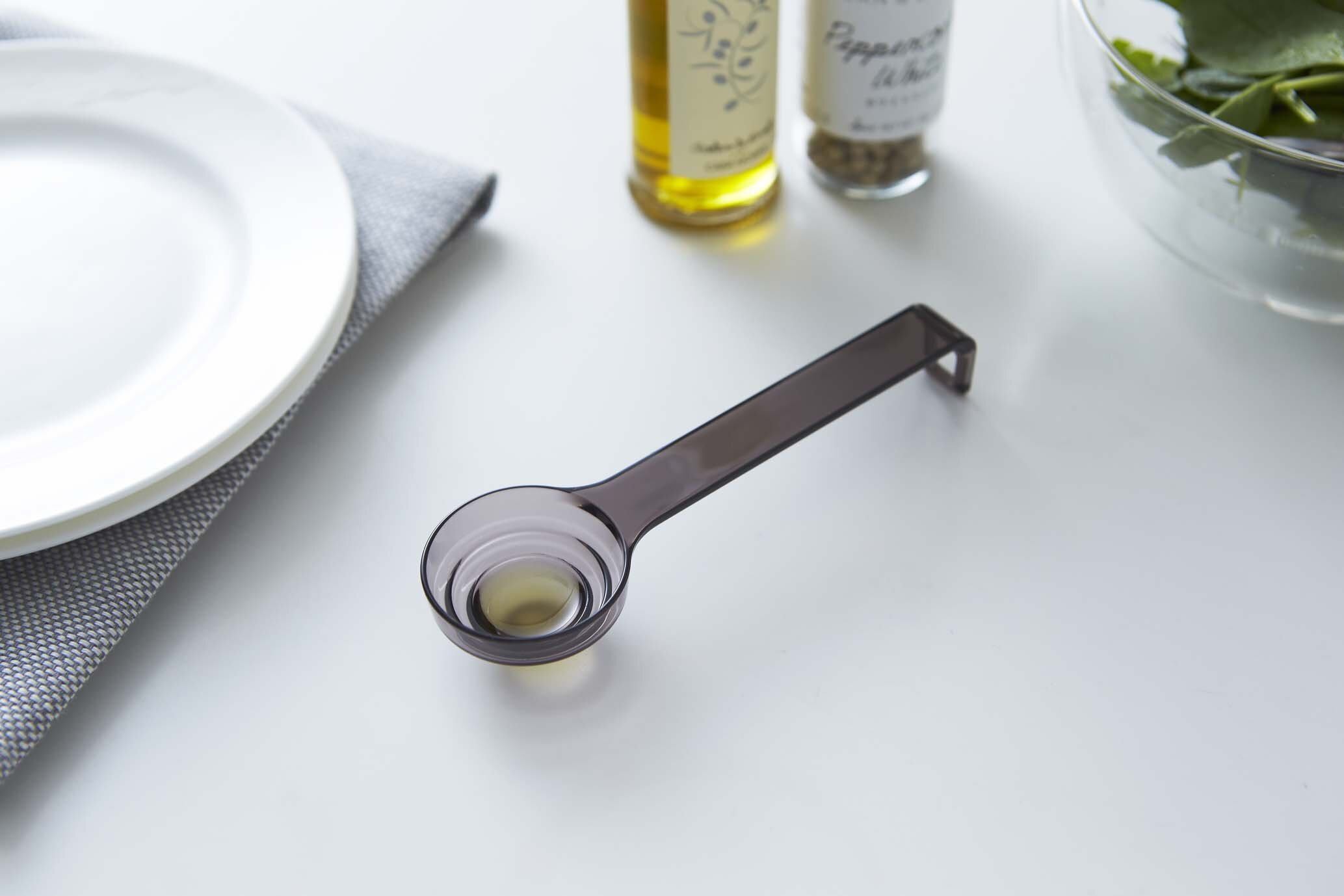 段差メモリで大さじ・小さじ・小さじ1/2がこれ1本で簡単計量。熱に強く割れにくいトライタン樹脂製。
