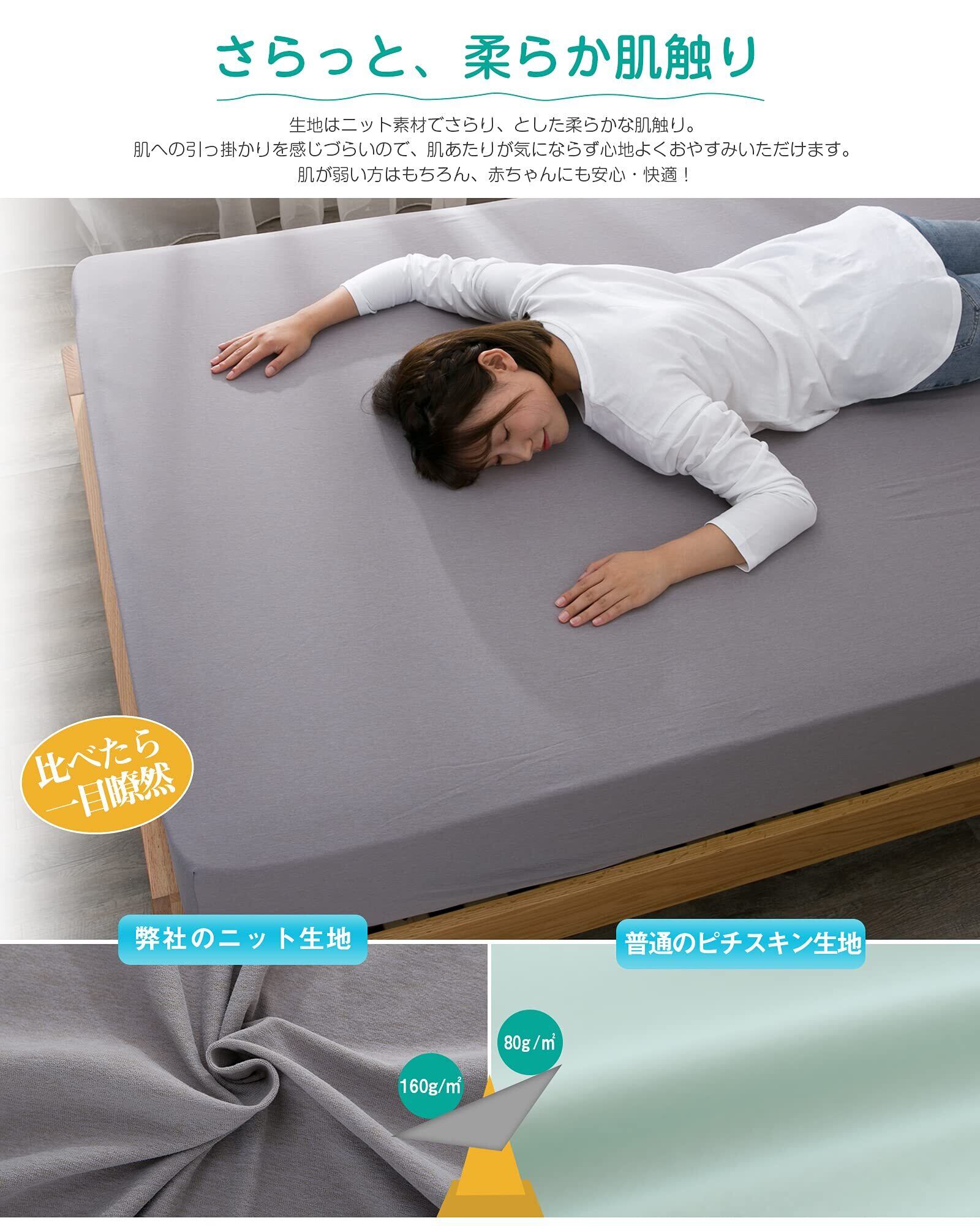 【さらっと、柔らか肌触り】:弊社のボックスシーツ生地はニット素材でさらり、とした柔らかな肌触り。肌あたりが気にならず心地よくおやすみいただけます。肌が弱い方はもちろん、赤ちゃんにも安心・快適!
