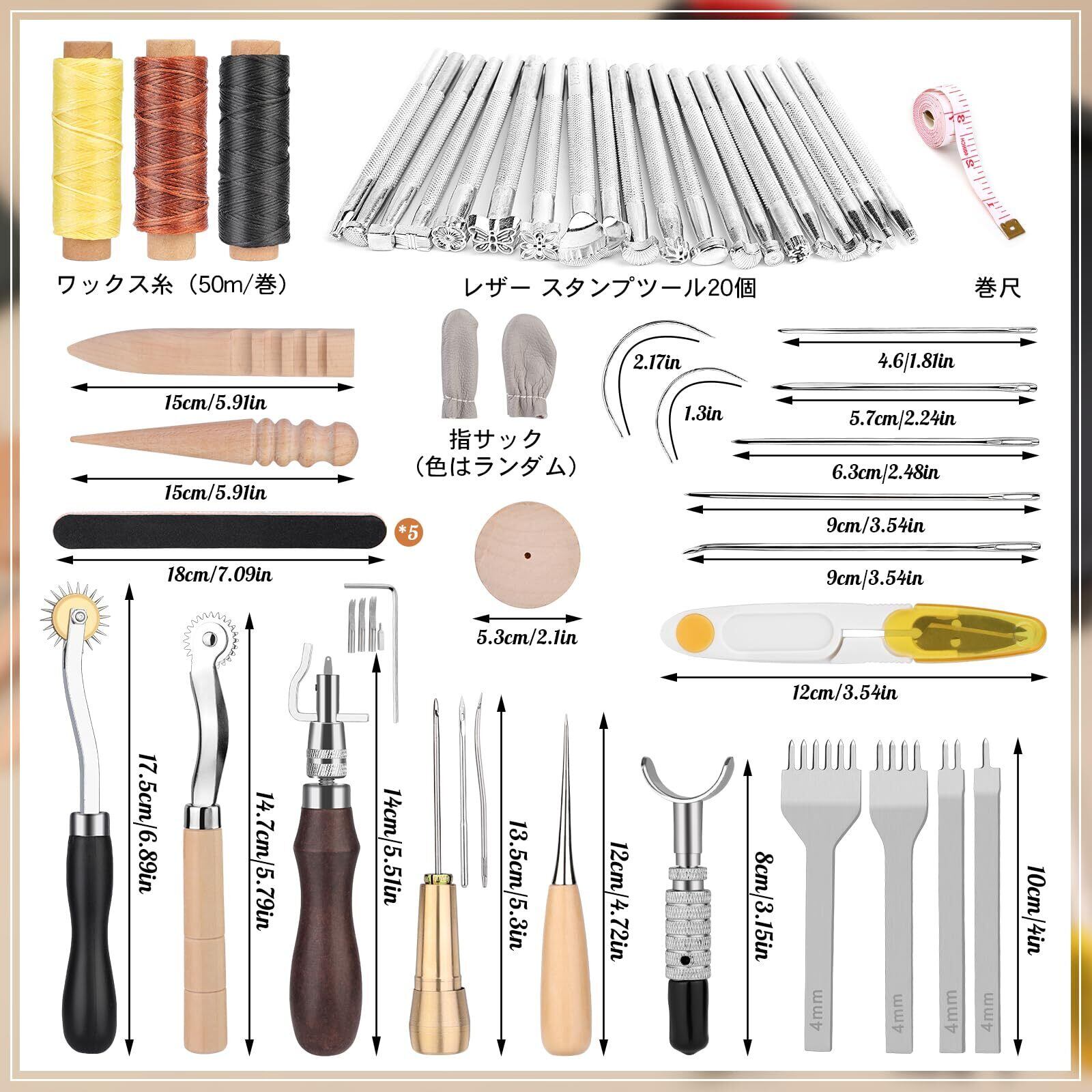 便利な裁縫セット: レザークラフトセットでは、ステッチンググルーバー、ステッチルレット、4本の菱目打ちがセットになっています。菱目穴は縫い目を美しく、均等にします。仕上がりもぐんとよくなります。また、各種のレザー針と高品質のワックス糸を厳選して揃えており、裁縫の出来栄えが多彩になります。