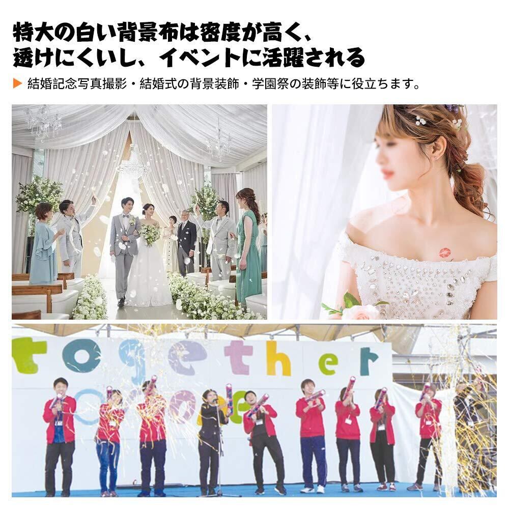 【ポリエステル製 & 大型 背景布 白布 - 3m x 6m】:FotoFoto 撮影用 背景布 白 - 3m x 6mは高品質なポリエステル材質を採用しており、生地が柔らかくて、垂れ感が良い。また厚手のため、透けなくてより良い撮影効果に達成できます。この撮影 布 白は市場に出回る綿製の背景布と比べれば、シワが目立たないし、低温アイロンでシワを取れるので、更に使いやすくて、より素晴らしいスタジオの効果を提供できます。大型なサイズの背景布により、写真撮影だけではなく、インタービューや映画やアニメなど製作にも活躍されます。