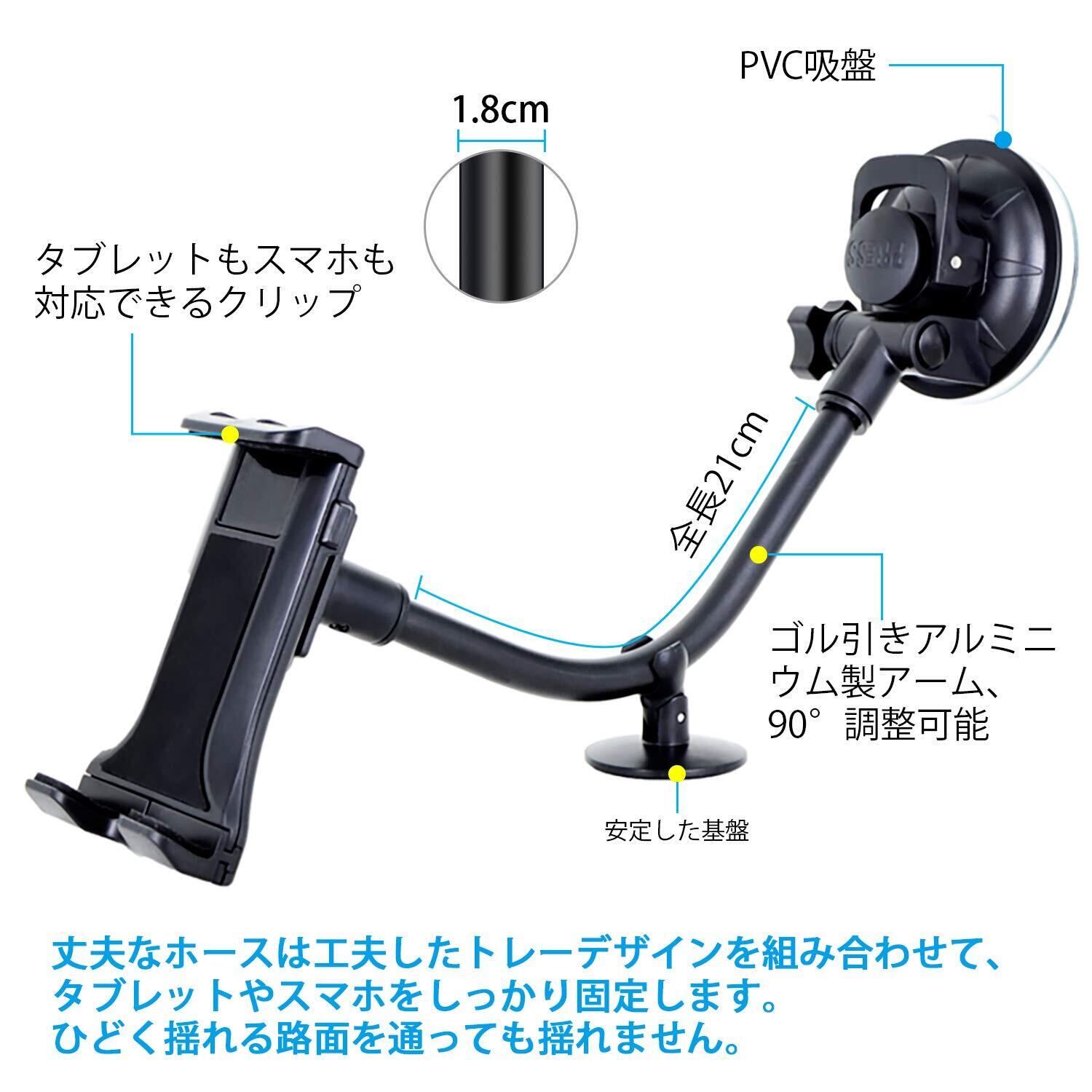 車載ホルダー タブレット スマホ 車載 ホルダー Jisoncase ナビスタンド 車フロントガラスに適用 強力真空吸盤式 取り付け簡単 360度回転 伸縮アーム しっかり固定 iPhone iPad Samsung Sony Huawei Android Kindle等多機種対応 4.0-10.5インチ