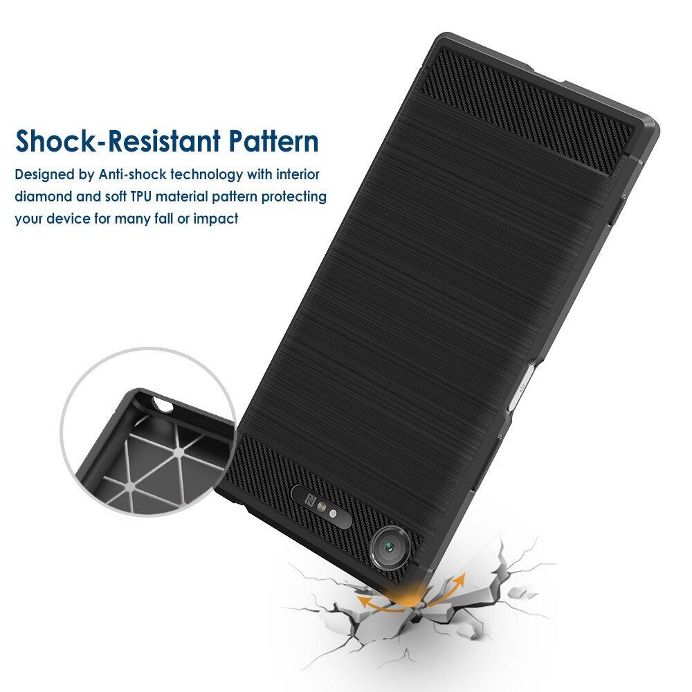 Simpeak Sony Xperia XZ1 対応 ケース ラギッド Xperia XZ1 適応 炭素繊維カバーSO-01K SOV36 対応 TPU保護バンパー 弾力性付き (ブラック)