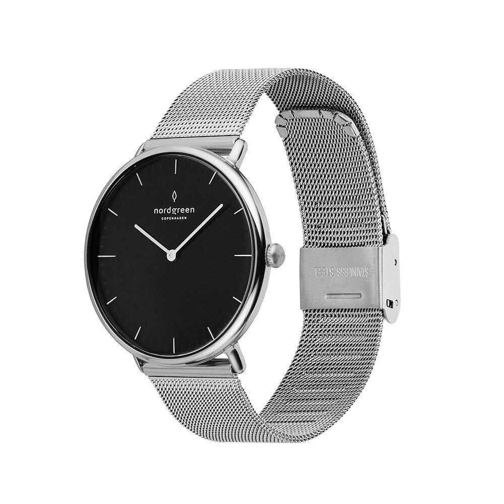 【2022最新】Nordgreen [ノードグリーン]Native 北欧デザイン腕時計 レディース シルバーの北欧デザイン 腕時計ブラック文字盤とシルバーメッシュベルト | Premium Stage