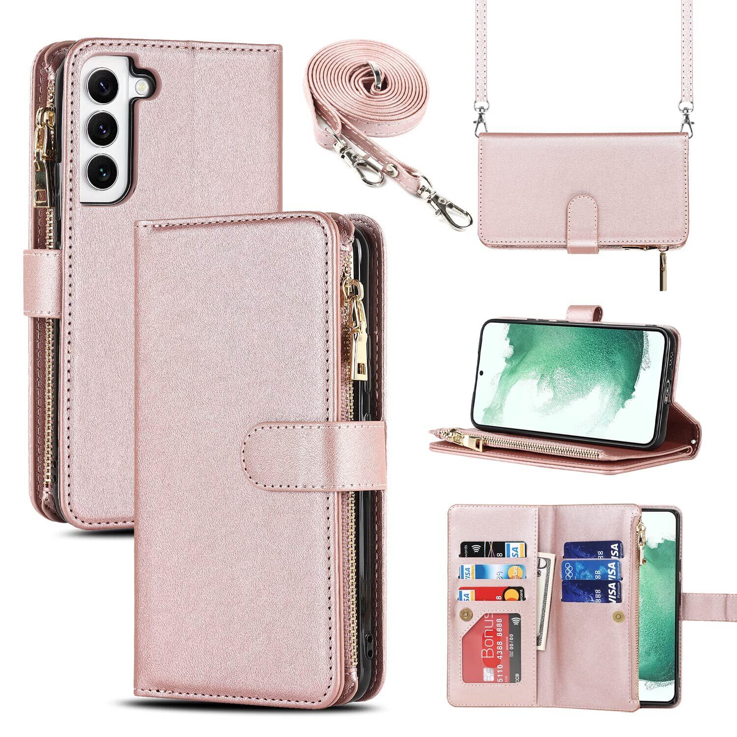 S22 galaxy ケース 手帳型 ショルダー クロスボディ Galaxy S22 ケース 手帳型 ショルダー SC-51C ケース S22 手帳ケース docomo / SCG13 ケース au 対応 S22ケース サムスン ギャラクシー S22 カバー S22 ケース SC51C ケース SCG13 カバー スマホケース S22ケース 適用 case 【iCoverCase】 ストラップホール付き カード収納 バッグ マグネット 留め具 肩がけ 首掛け 斜め掛け カードケース ファスナー型 ストラップ付き カバー ショルダーケース クロスボディケース カード入れ スマホケース 携帯カバー ピンク