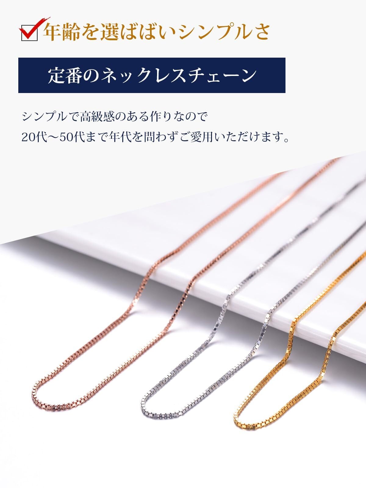 ✿[ベネチアンチェーン] なめらかな見た目と直線的でスマートなライトなので、落ち着いたエレガントな雰囲気のあるチェーンです。チェーンの太さは1mmで、長さは40cm/45cm/55cm+5cmアジャスター付きます。