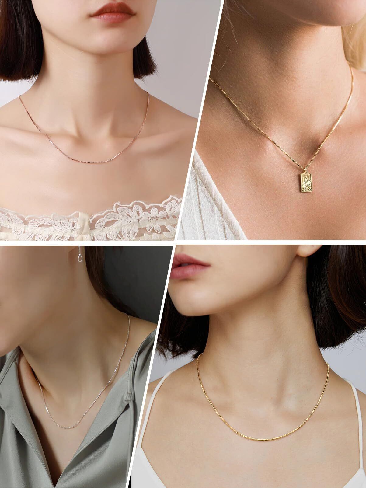 ✿[チェーンネックレス] 細身で上品でありつつも、チェーンだけの装着で存在感が抜群なチェーンネックレスです。シンプルなデザインでどんなコーデにもマッチするので、一つ持っていると重宝する定番ネックレスです。