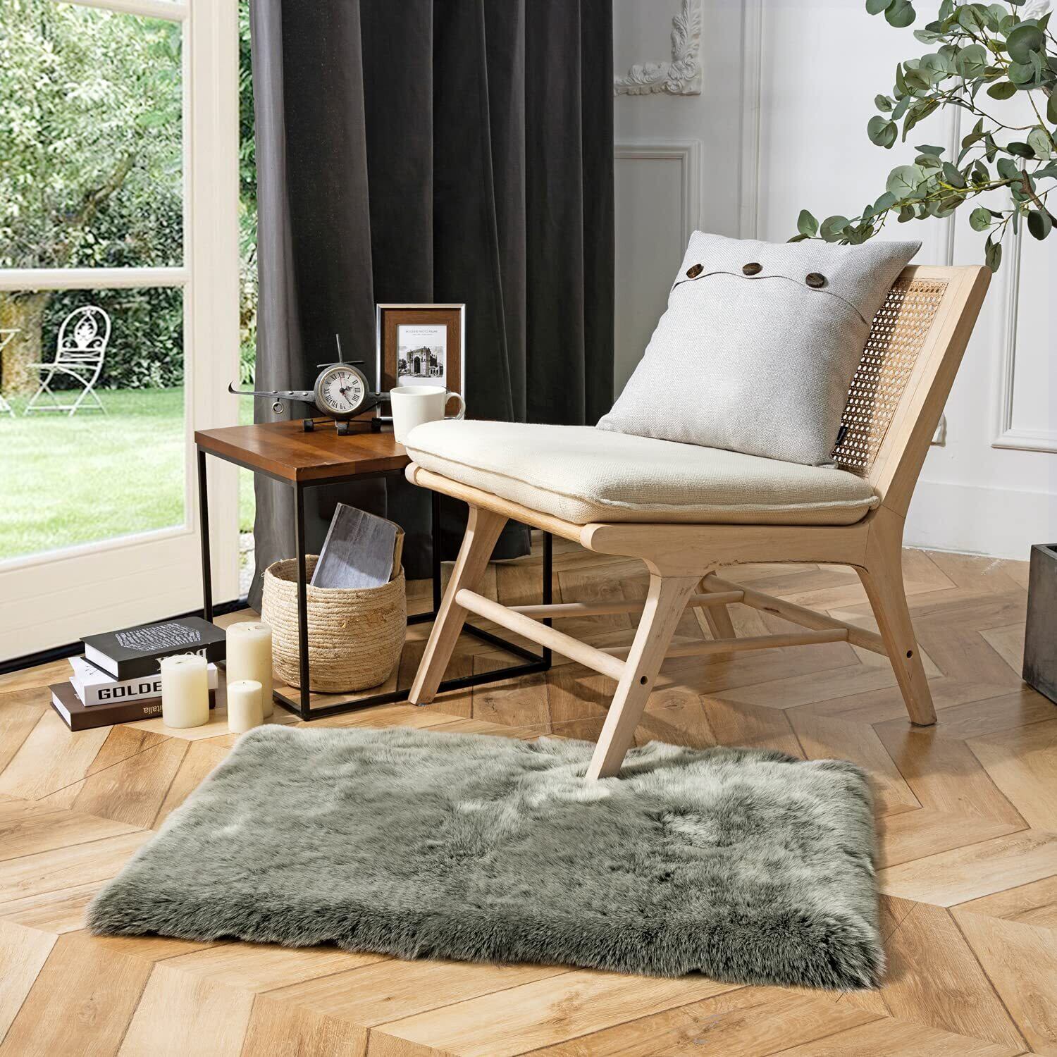 Phantoscope ラグマット カーペット ムートンマット 滑り止め付 柔らかい シープスキン 厚手 極厚毛足約5cm 手触り優しい ふわふわ 折り畳み 洗える 抗菌 防ダニ 北欧 キャンプ 冷房 床暖房対応 矩形 60×90cm チップ・ホワイト/ダークグリーン