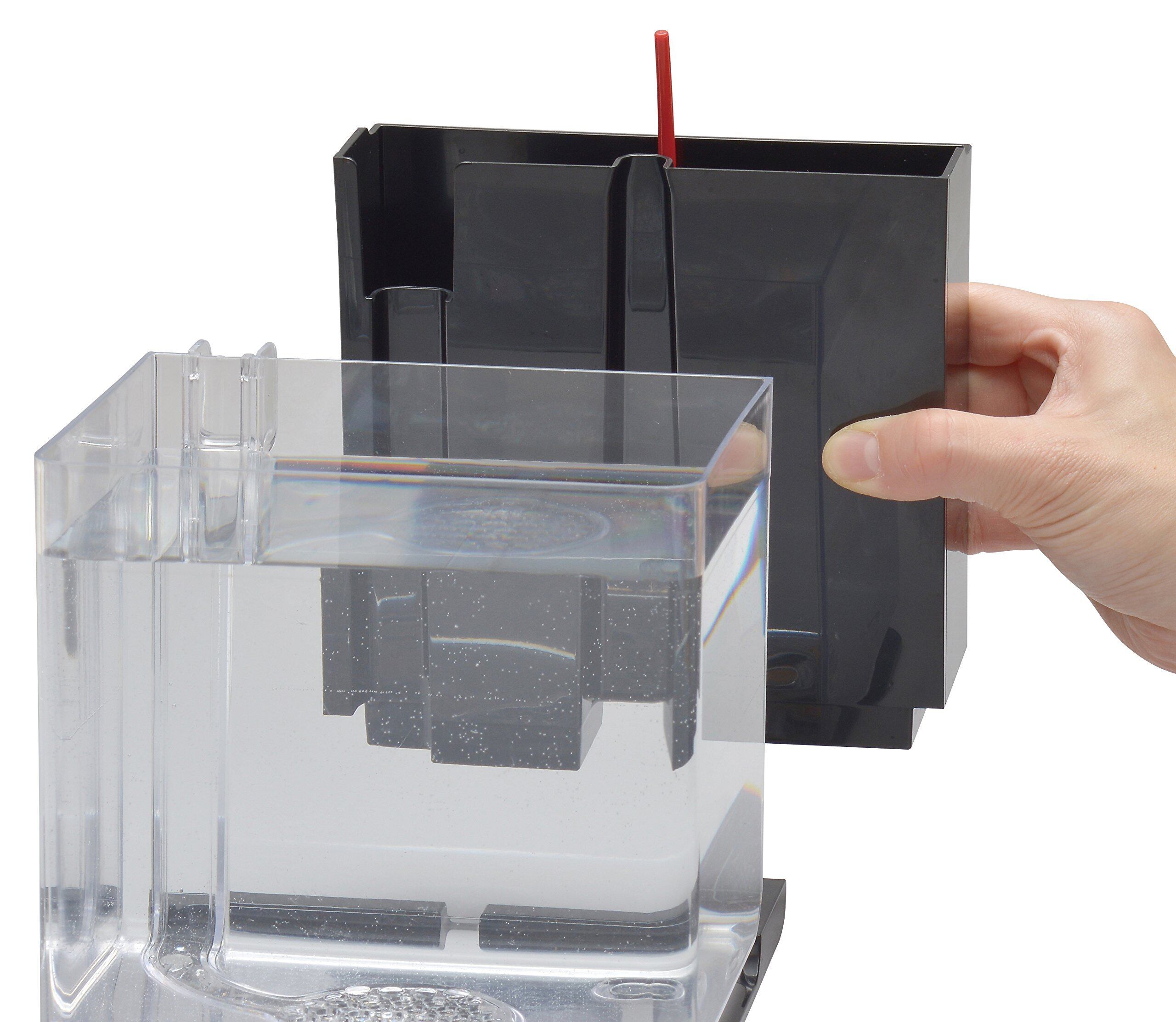 『水替え簡単システム』採用。面倒な水替えが簡単に。 植物に水を上げるような感覚で、コップ1杯の足し水だけで水換えができる。 新感覚インテリア水槽。 水槽内にコップ1杯の水を入れるだけで、水槽内の汚れた水が水槽の底をから吸い上げて、水槽背面のケースに自動排水されます。 水捨てお知らせサインが(フロートスティックが上がったら)出たらケースに溜まった水を捨てるだけ。 お魚を移動させずに、足し水だけで簡単水換えができるワンタッチ排水システム採用のインテリア水槽! 楽ポイント1・・・コップで足し水するだけ、簡単排水。※底にたまった残餌やフン等のゴミは、ろ過ケースに流れにくいので、定期的にスポイト(別売)等で取り除いてください。 楽ポイント2・・・水槽の持ち運び不要。だから、水をこぼす心配がない。 楽ポイント3・・・魚を移動させずに水換えができる。だから魚にやさしい。 ベタやメダカなど小型の観賞魚の飼育に。 セット内容:水槽、フタ、ろ過ケース、水槽、水槽ベース、カップ、リバーシブルバックスクリーン、カルキぬき 水槽サイズ:約 幅16.0×奥行17.0×高さ16.3cm 水容量:約2.1L(水槽のみ)(ろ過ケース:約0.5L) 飼育匹数目安:ベタは1匹、メダカは1~3匹