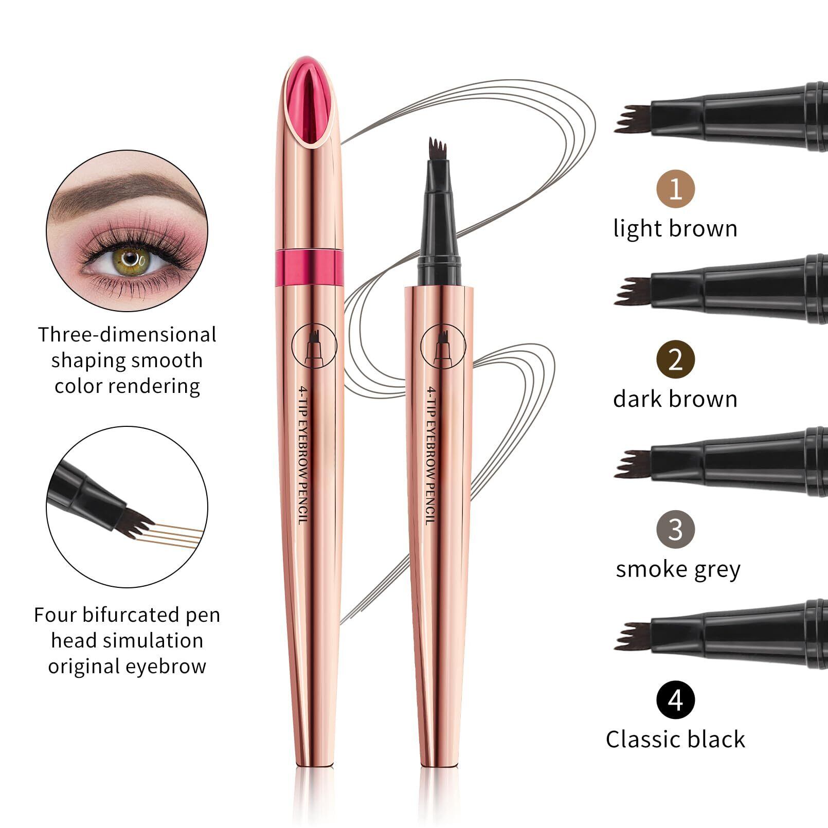 【最新版、4d液体アイブロウ】手軽なペンタイプの眉ティント。ユニークな4ヘッドの二股に分かれたペン先のデザインで、さまざまな眉毛。なめらかでスイスイと簡単に描ける。まるでクレヨンのような柔らかな芯で濃淡・太細も自在。書き始めてから30秒~1分以内なら自由に直せます。これ1本で自眉のような自然な眉メイクが完成です。