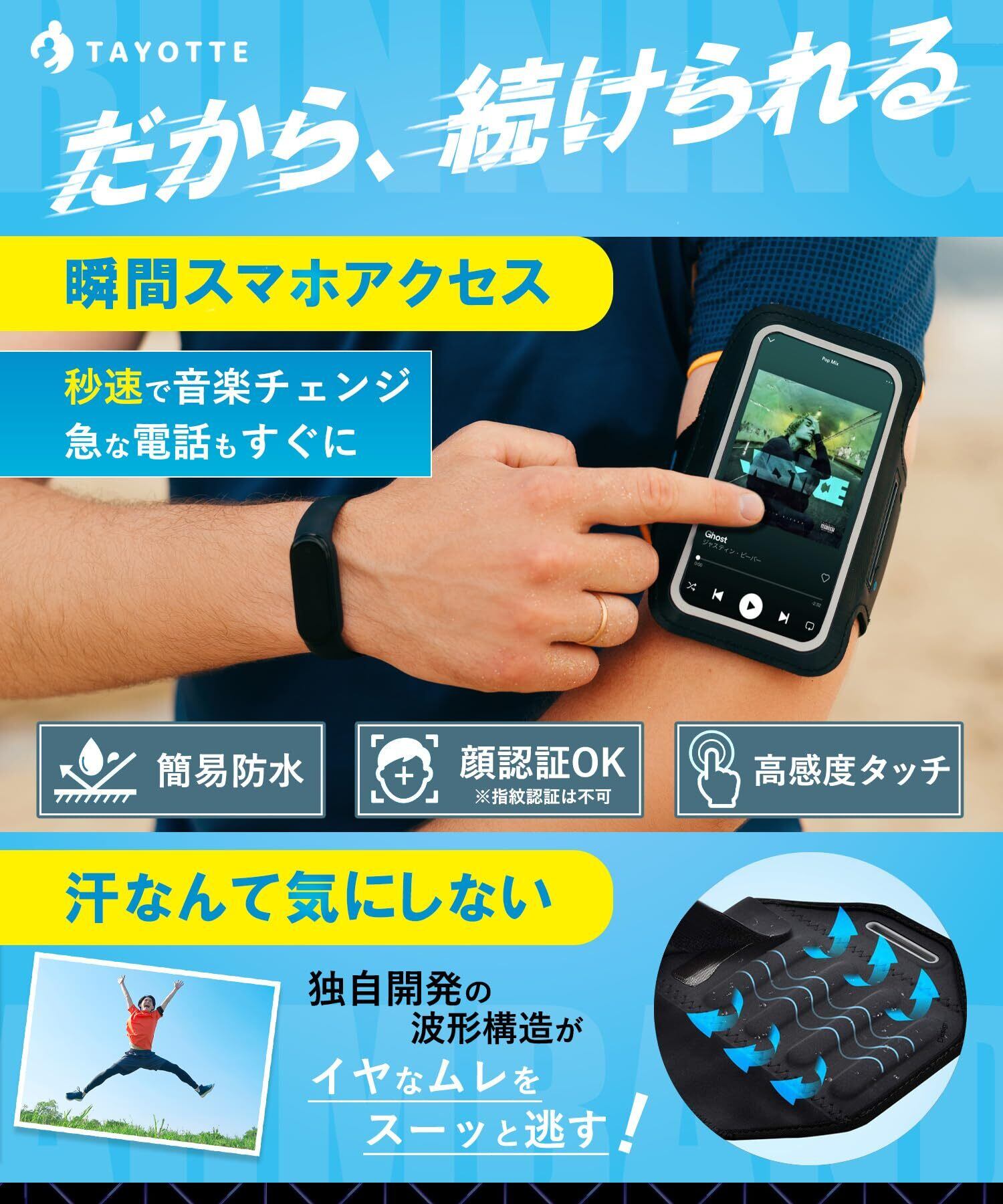【箱根駅伝ランナー愛用】 ランニング スマホ アームバンド 『ズレずにフィット』 スマホケース ポーチ 腕 携帯ホルダー (通常サイズ)