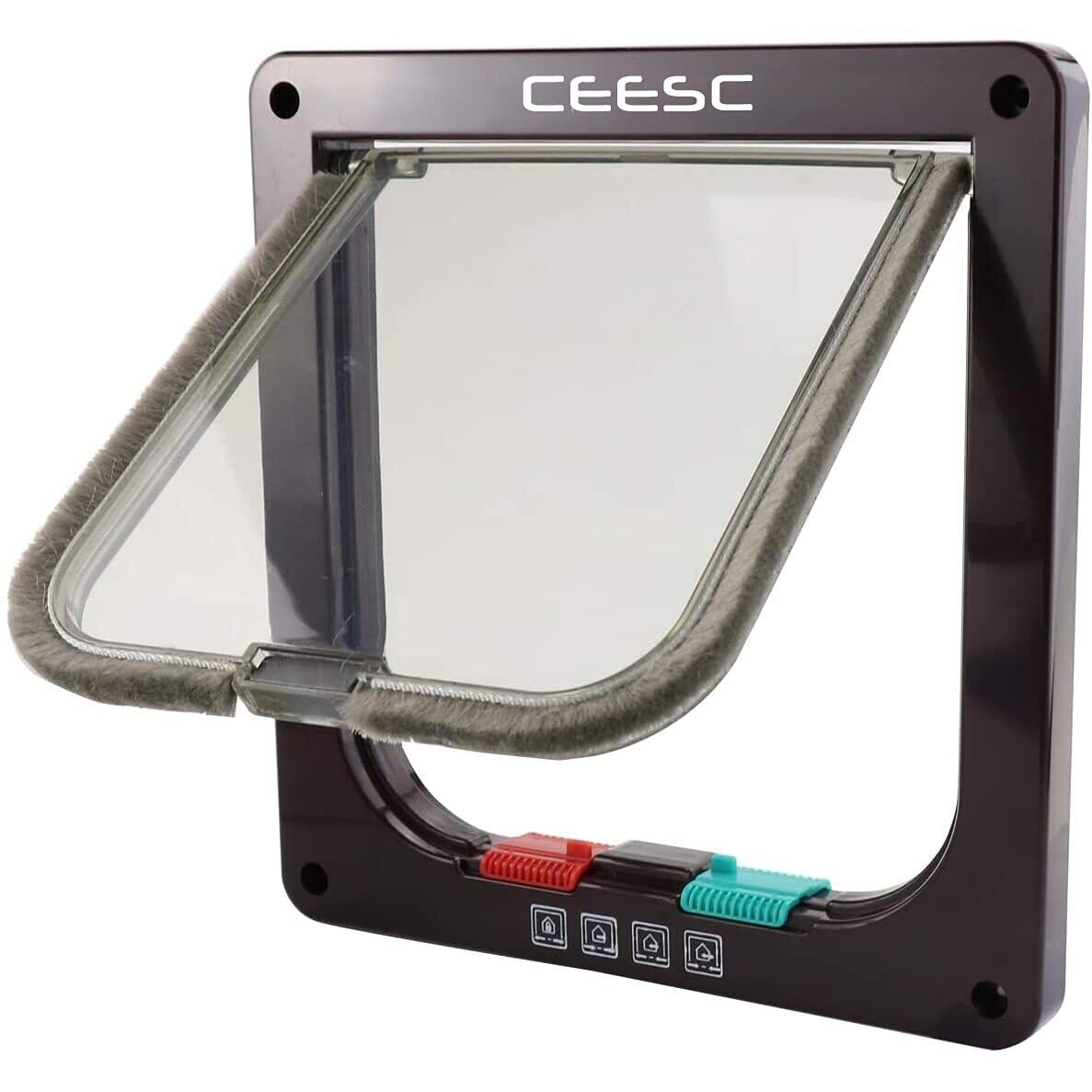 CEESC 4WAY ペットドア 小型 犬 猫 ペット出入り口 ドア 勝手口 扉 冷暖房対策 日本語取扱説明書付き (ブラウン, 小)