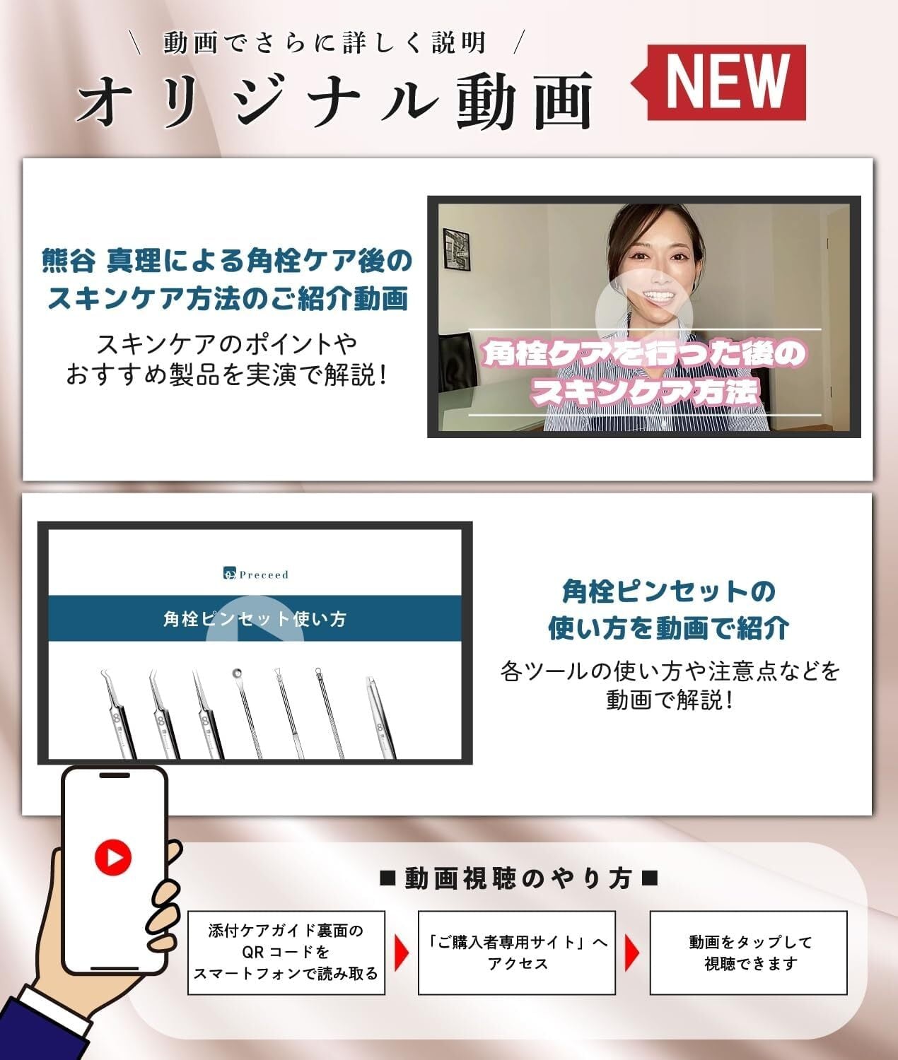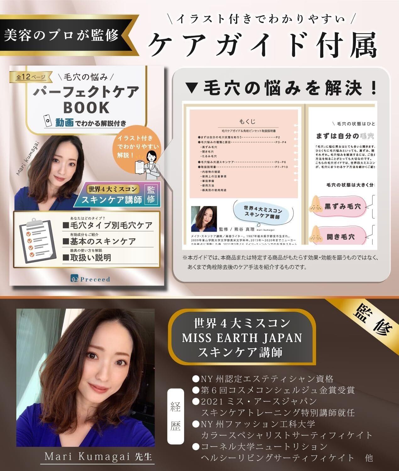 角栓取り 【 トータル角栓ケアセット 】世界四大ミスコンのスキンケアトップ講師、熊谷真理先生監修の 毛穴ケア ガイドと取扱説明書付き角栓ケアセット。どんな小さな物も的確に掴める最高規格ランク精密角栓ピンセット。Preceed(プレシード)限定のトータル角栓ケアセットで、爽快安全な 角栓取り をお楽しみ下さい。