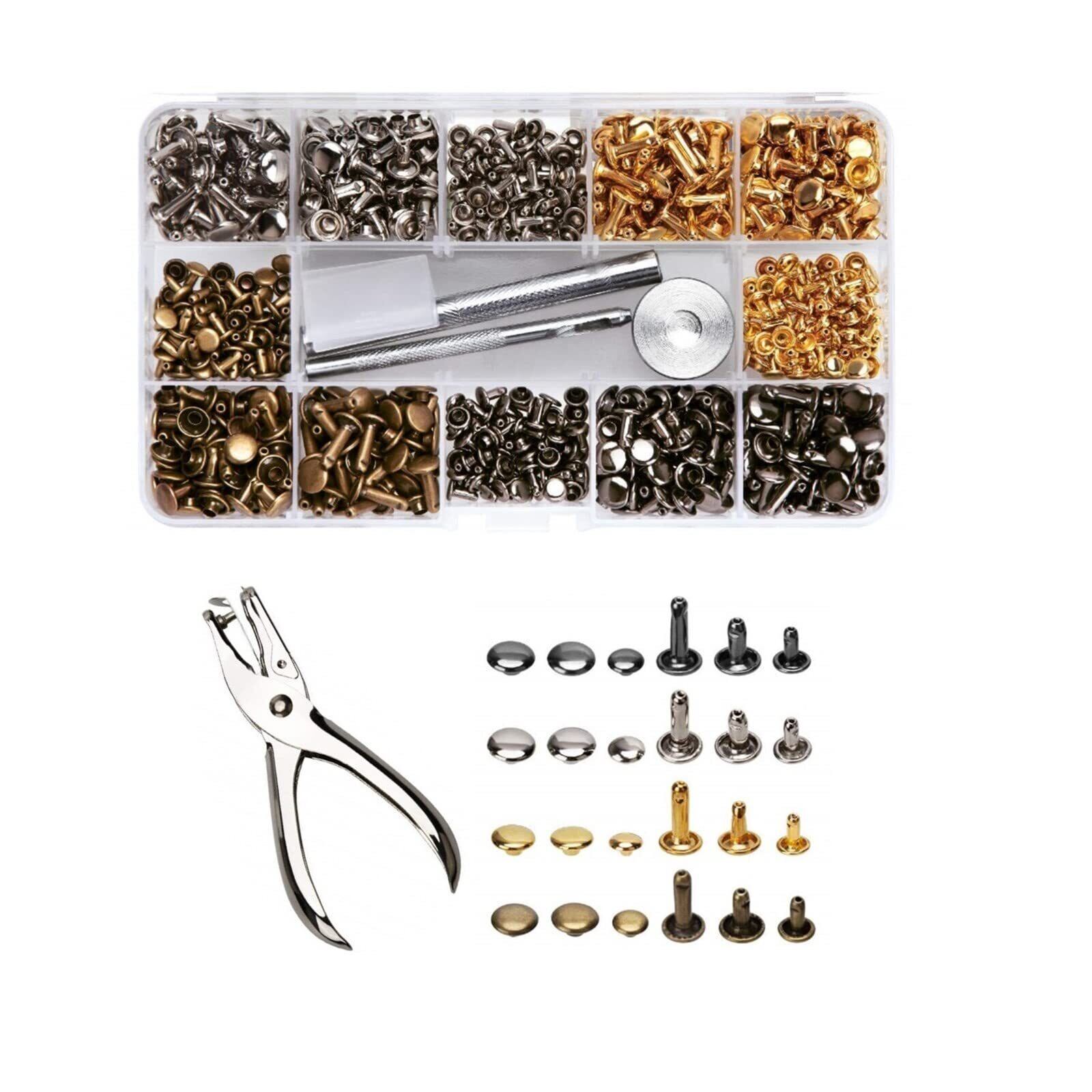 【セット内容】カシメセット *240組、カラー:ゴールド、シルバー、古銅色、ガンメタル。3サイズ(6*6mm/8*8mm/8*12mm)各20組。パンチペンチ*1、 打ち棒*2、 打ち台*1、 収納ケース*1 。DIY好きな方にお勧めです。豊富なアクセサリーがありますから、いろいろな綺麗なレザー工芸品ができます。