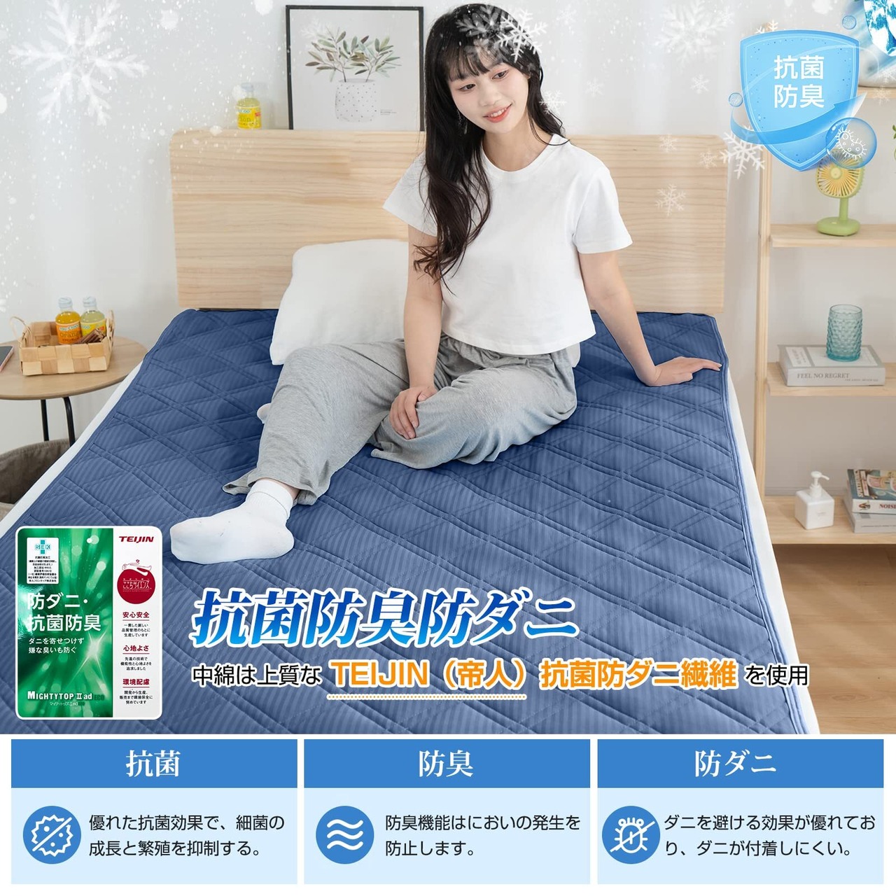 【帝人中綿を使用&SEKマークを取得:抗菌防臭防ダニ】中綿は上質なTEIJIN(帝人)抗菌防ダニ繊維を使用し、細菌の繁殖を防止し、抗菌防臭防ダニの機能を有する。機能が持続し、何度も洗濯した後の効果は依然として新しいものと同じ。本製品はISO9001認証工場で生産されており、SEK認証を取得しており、安全が保障されており、低ホルムアルデヒドで小さなお子様にも安心です。