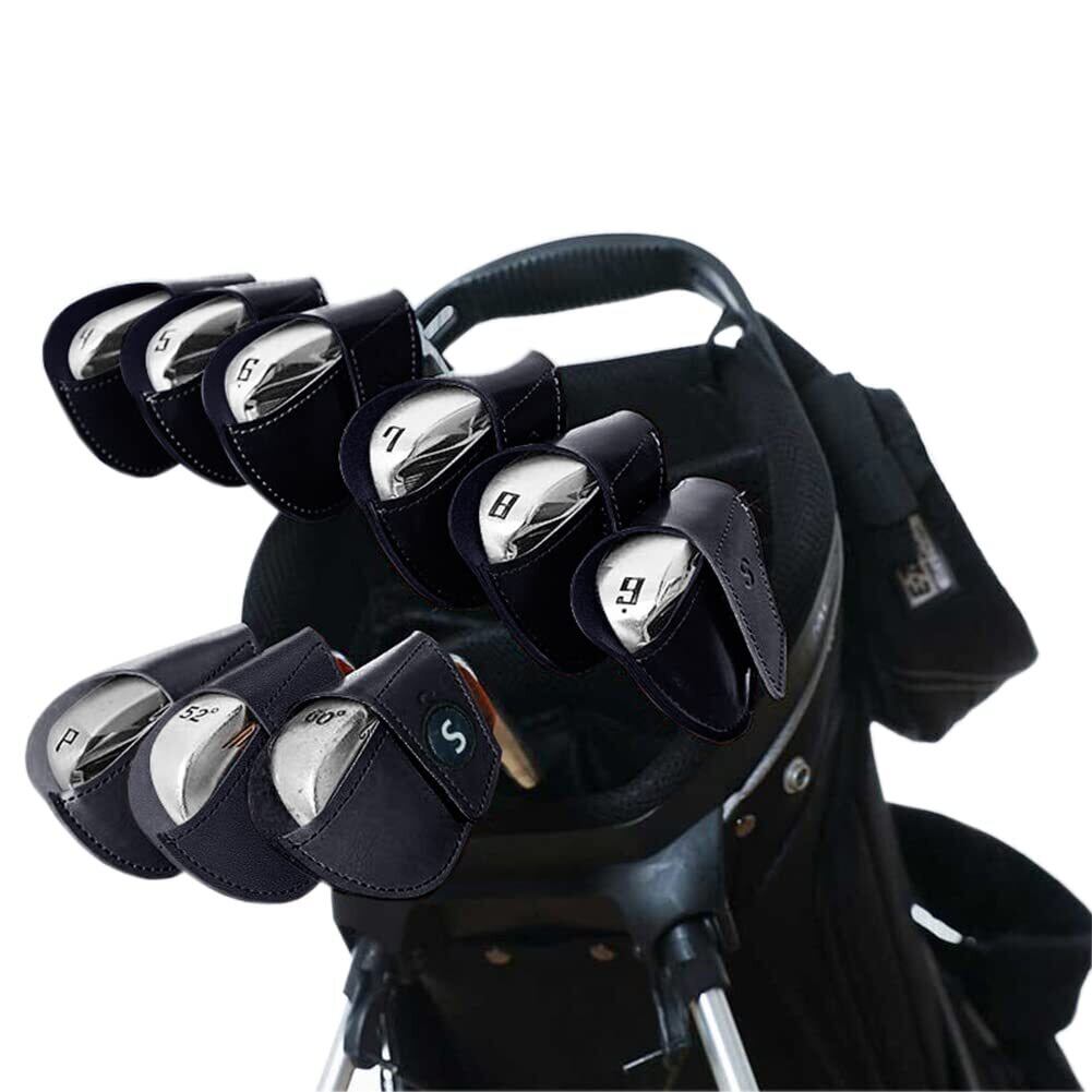 Sitengle ゴルフアイアンカバー ゴルフヘッドカバー 10点セット PU革 ゴルフクラブバー マジックテープ ゴルフ用品 ゴルフ小物