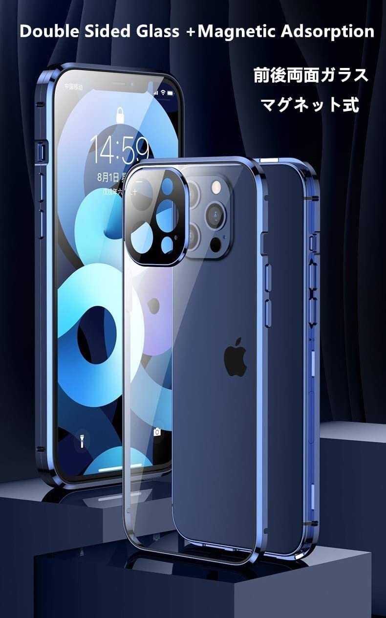 全面カバー iPhone ケース カメラ保護フィルム付き アルミバンパー ガラスフィルム ロック付き マグネット式 アイフォン ガラスケース 両面ガラス 両面ケース バンパーケース 透明 クリア