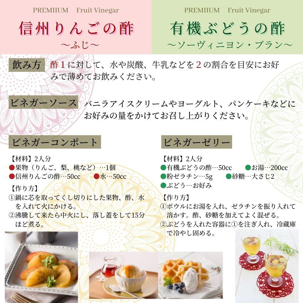 芳醇で濃厚な甘みをもつ長野県産のふじりんご果汁から丁寧にりんご酢を造り、ふじりんご果汁を加えて酢本来のおいしさを追求し完成したのが「プレミアムフルーツビネガー信州りんごの酢 ふじ 」です。