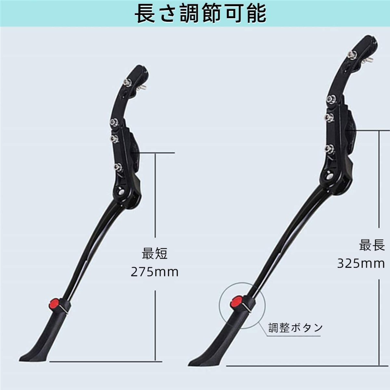 【調整可能】この自転車のキックスタンドは、24 "26" 27.5 "28"マウンテンバイク、700Cロードバイクに合わせて自由に調整できます。ほとんどのマウンテンバイクに適合します。注:センターマウントのキックスタンドには対応していません。