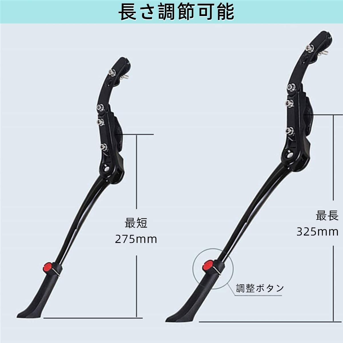 [Hordlend]自転車 キックスタンド バイク サイドスタンド ロードバイク スタンド 長さ調節可能 アルミニウム合金製 二点固定 簡単取り付け 24-28インチ~700C対応 MTB ロードバイク ブラック