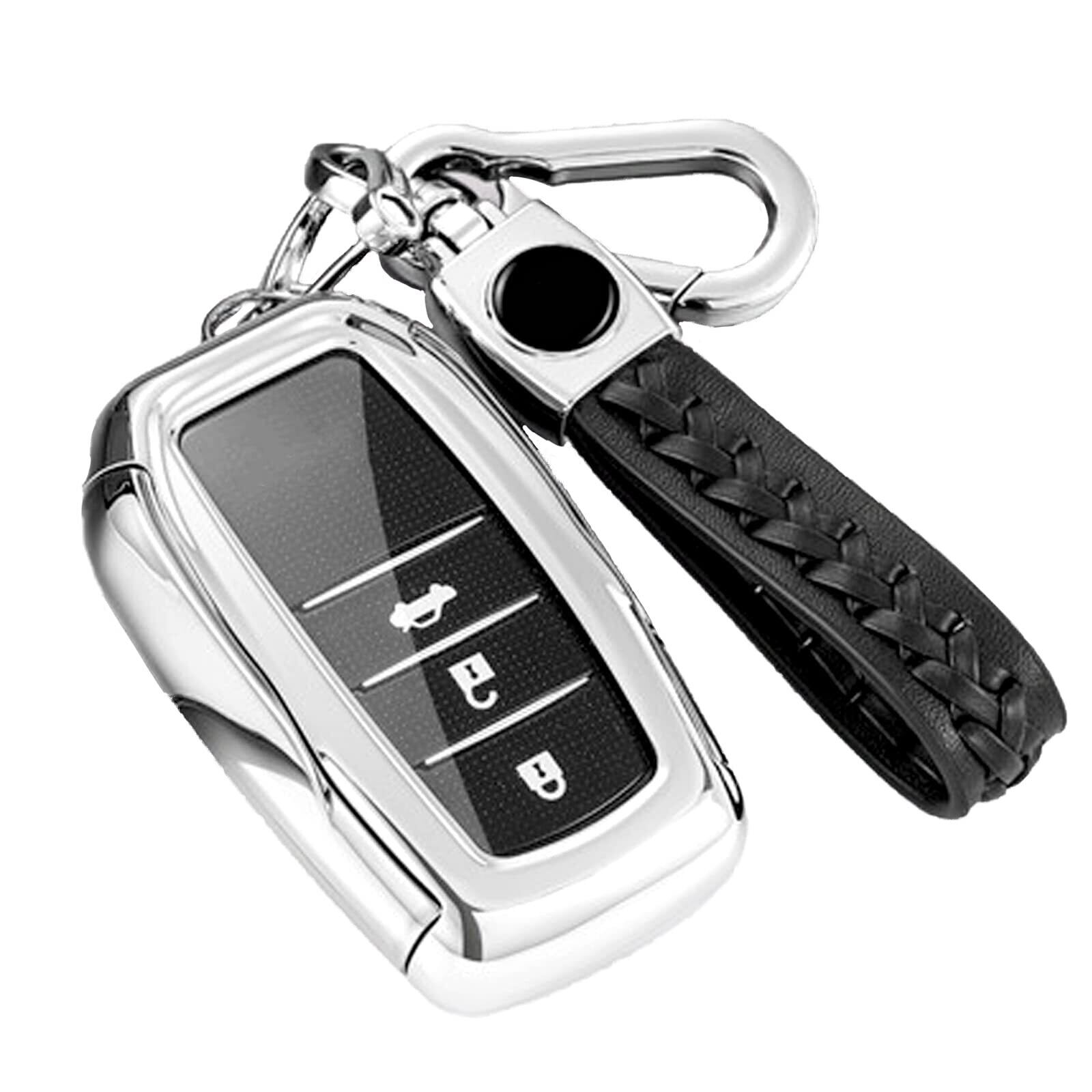 D型キーフォブと編み込みハンドストラップを備えたトヨタ自動車製スマートキーホルスター。