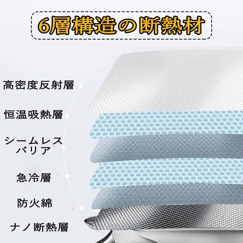 【2022年改良版&6層構造】車内の日光に当たると、特に夏のフロントガラスに強い日光が当たると、オーブンのような断熱効果があります。 長すぎると、機械の経年劣化や破損の原因になります。 本製品は、高密度傘生地、特殊断熱・紫外線防止生地、アルミホイル反射層、超厚手の高密度不織布を使用し、およびその他の高品質の素材。99%以上の紫外線を効果的に遮断します。