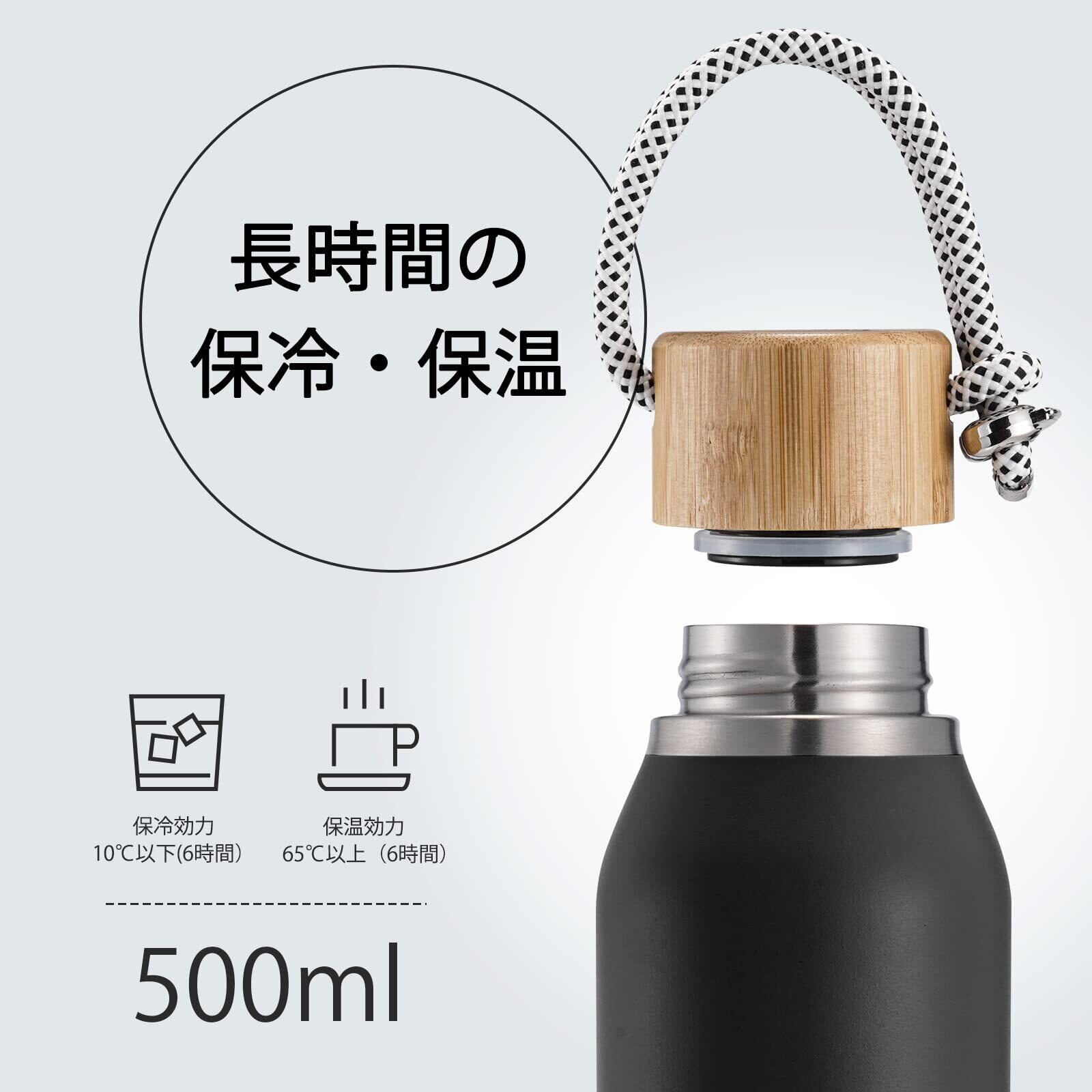 水筒 500ml 真空断熱 保温保冷 ステンレスボトル カップ本体食洗機対応 保温水筒 おしゃれ 洗いやすい 軽量 保温杯 魔法瓶 洗浄用スポンジ付き 男の子 女の子 大人 子供 ブラック