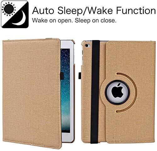 JXCX JXCX iPad 9.7 2018/2017ケース 新型(Newモデル)/iPad Air/iPad Air2カバー iPad 9.7インチ(第6、5世代)軽量 手帳型 360度回転スタンド オートスリープ機能 3段階調節可能 固定バンド 脱落防止耐衝撃 耐久性 おしゃれデニム生地 (Khaki)