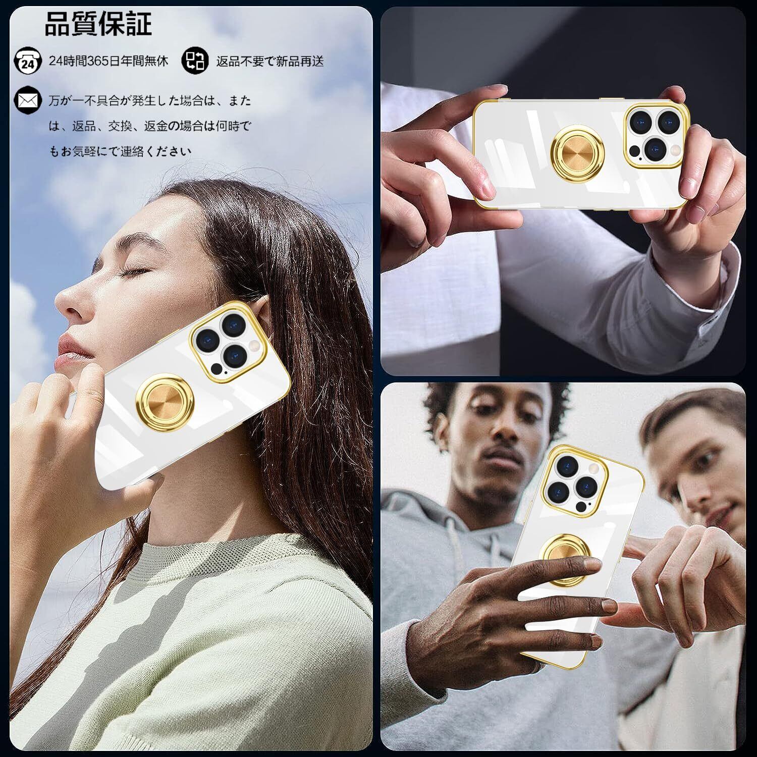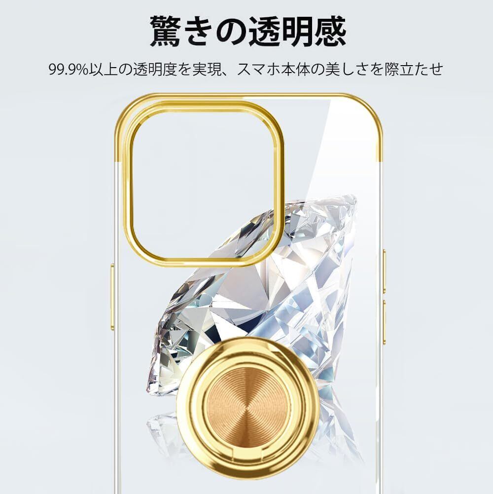 iPhone 15 Pro 用 ケース リング付き クリア iPhone15Pro 用 カバー 耐衝撃 全面保護 軽量 薄型 イフォン 15 Pro 用 スマホケース スタンド機能 車載ホルダー対応 擦り傷防止 滑り止め 落下防止 ストラップホール付き 透明 TPU(ゴールド)