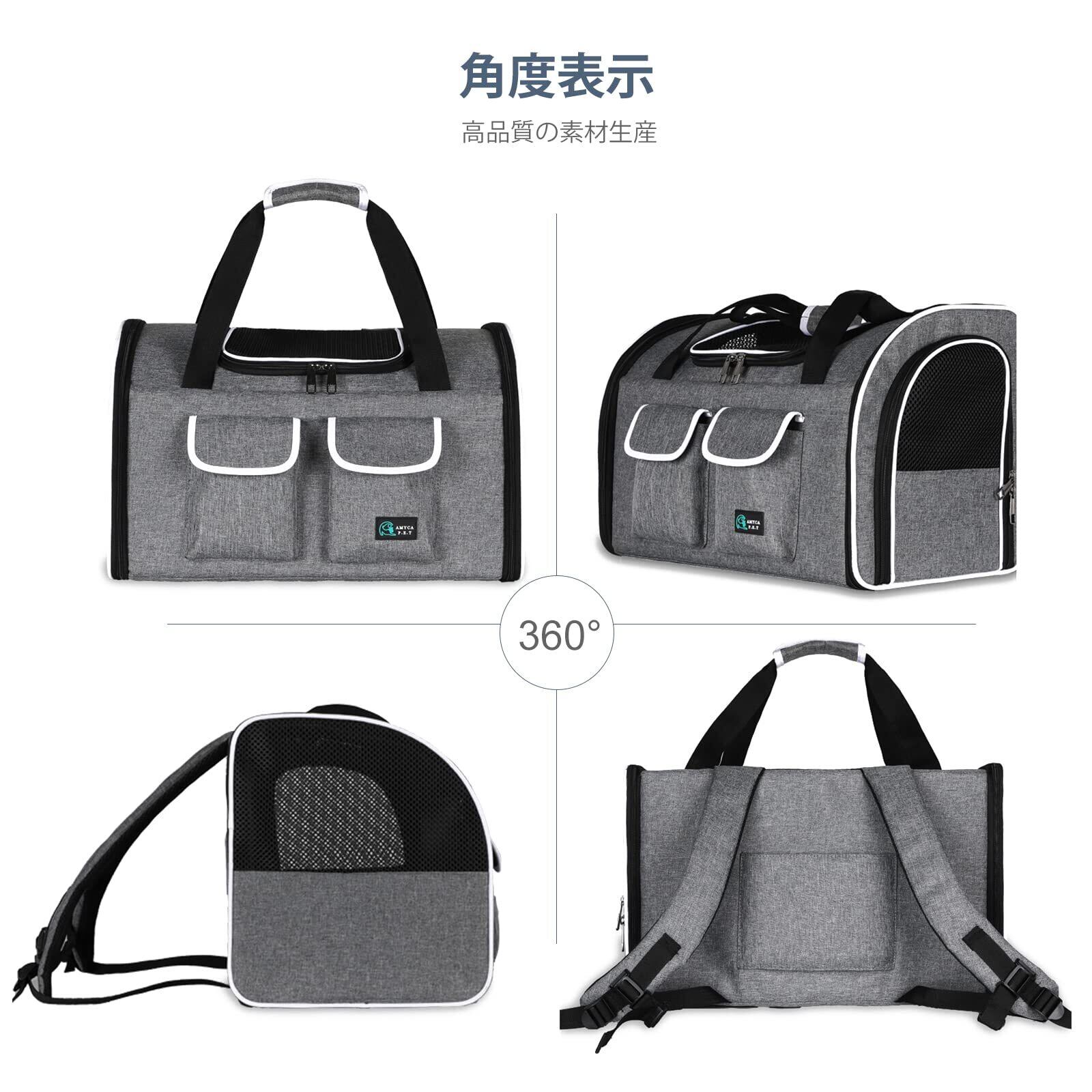 PETCUTE 猫キャリー 犬キャリー うさぎキャリーリュック キャリーケース 手提げ ペットキャリーバッグ 2way フロントポケット 猫二匹入れ 折り畳み可 通気 手提げキャリー 洗える 猫用 小型犬 うさぎ用 グレー