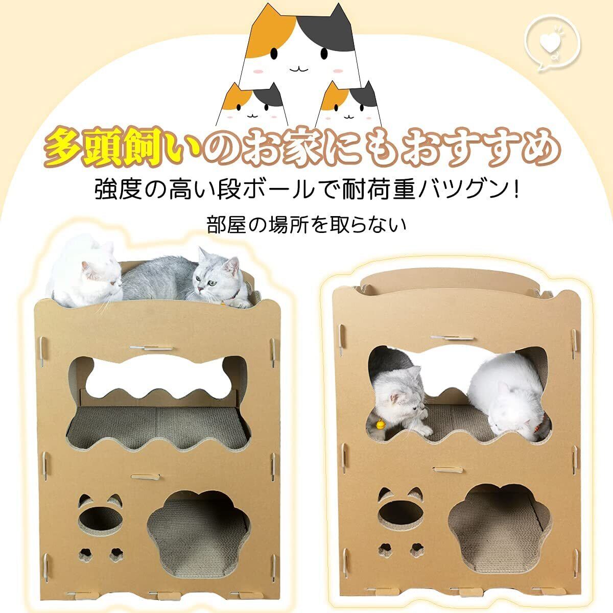 【RAKU】新型猫用爪とぎ 天板2枚付き キャットハウス キャットタワー ダンボールハウス 爪とぎ兼ベッド 猫箱 二階 組み立て式 高密度段ボール 収納簡単 ストレス解消 通気 (2部屋)