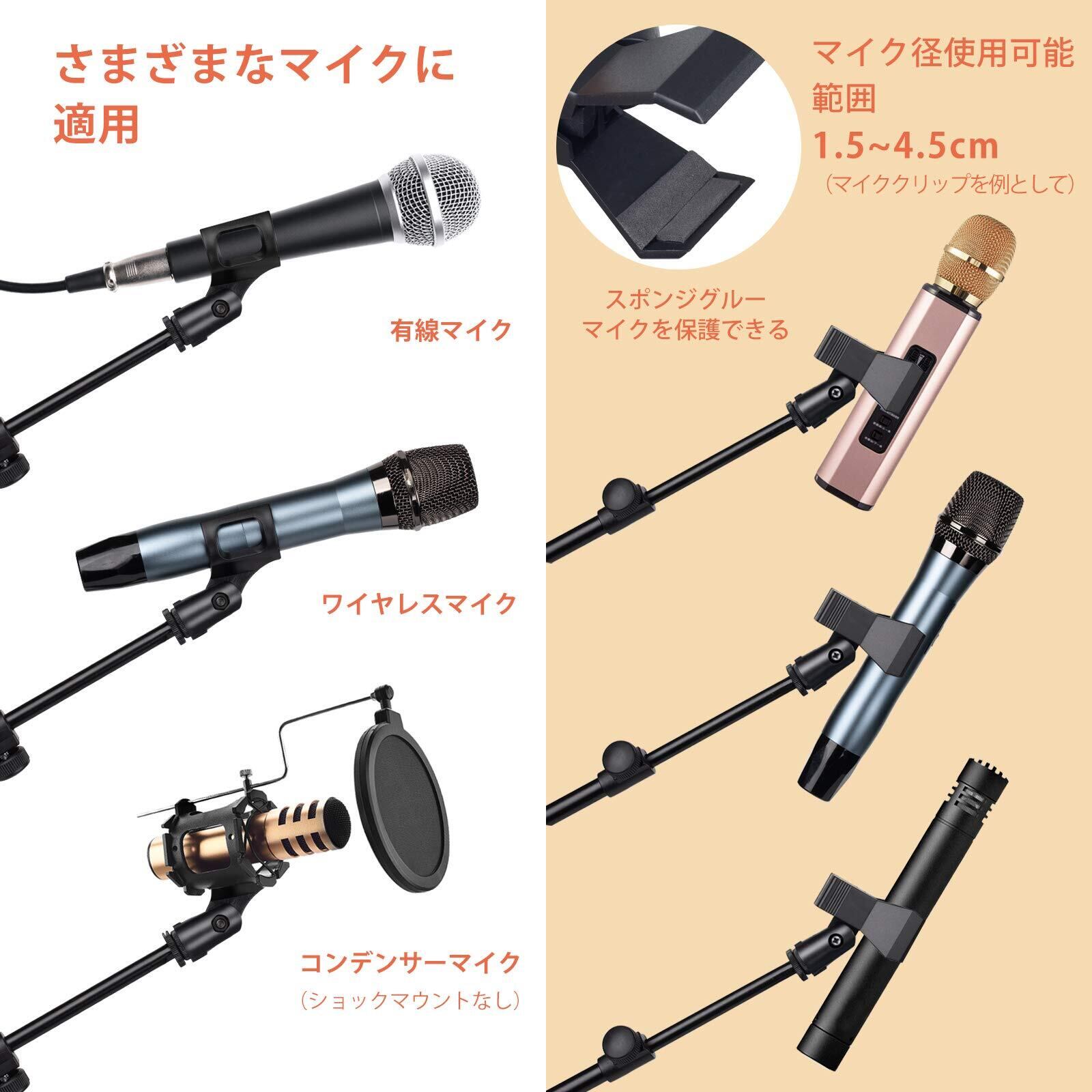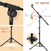 【360°調整・ゴム足付き】このマイクスタンドは、360°自由にマイクスタンドのブーム角度を調整でき、もっと快適です。また、ゴム足が付いて、滑り止めることができ、よく保護できます。