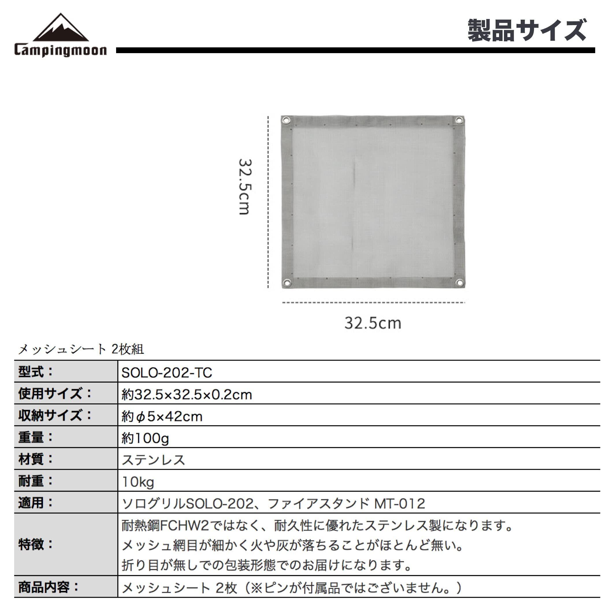 キャンピングムーン(CAMPING MOON) 焚き火 メッシュシート B4型 ソログリル ラージ SOLO-202 替え用 2枚セット ステンレス304製 SOLO-202-TC