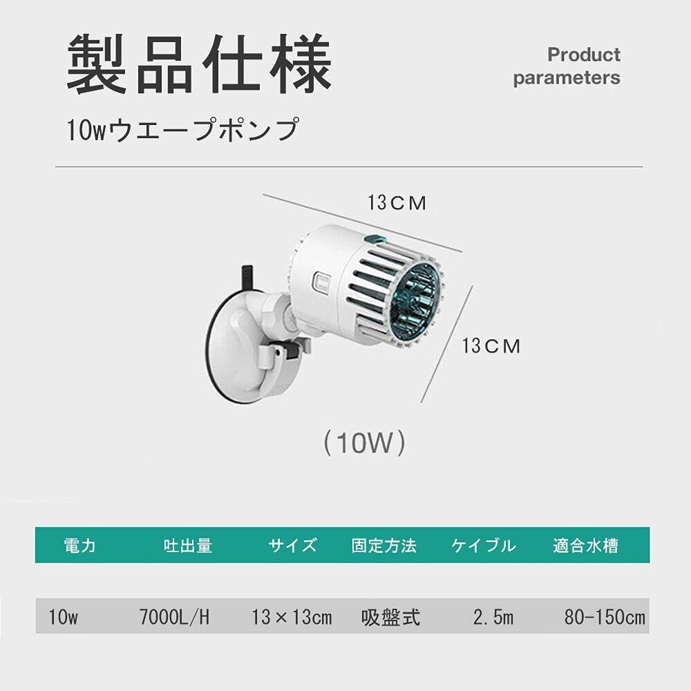 【規格】入力電圧:AC 100V 50/60Hz 電力:10W 最大流量:7000L/H 騒音クラス:35デシベル以下 電源コードの長さ:2.5M 適用水槽:80-120CM