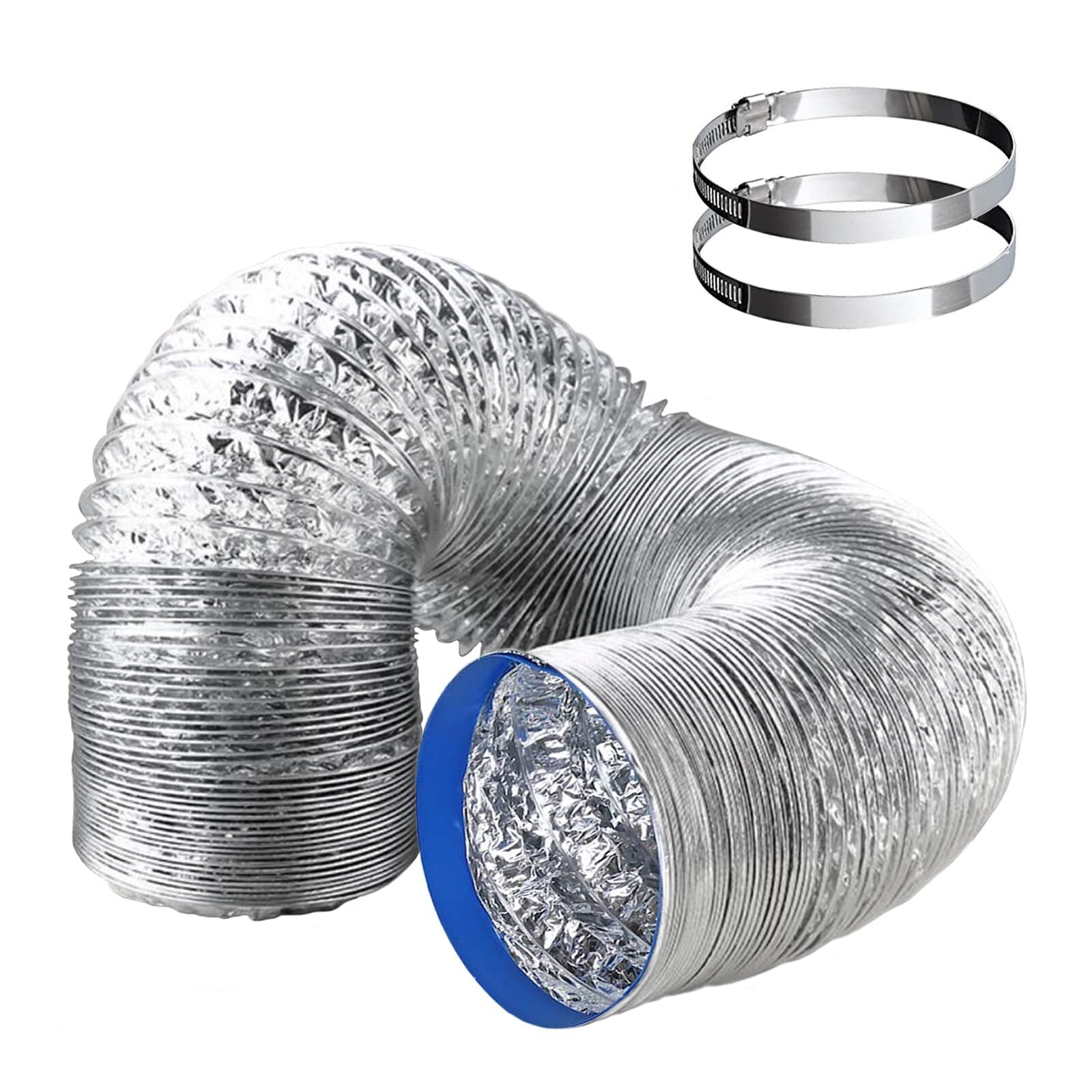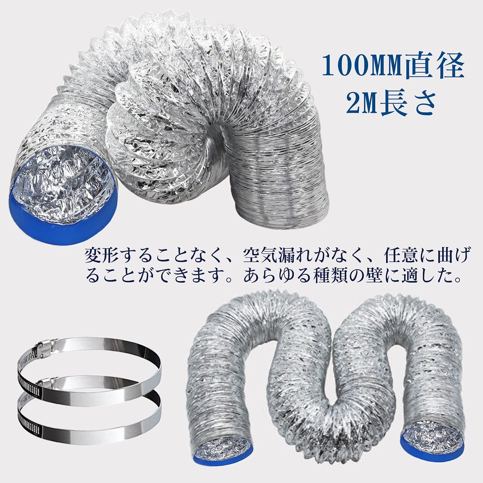 Tosucs ダクトホース セット 100MM(直径)2M(長さ)フレキシブルダクト 100mmのホースバンドを2本付き 換気用アルミホース レンジフード用 排気ホース 換気扇用 ホース換気パイプ ファンネル 排気ダクト 耐熱 防水 低騒音