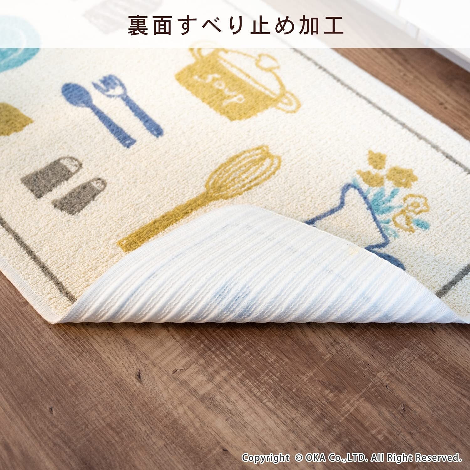 オカ(OKA) ビストロ キッチンマット 約45cm×180cm ブルー (台所マット 日本製 すべり止め)