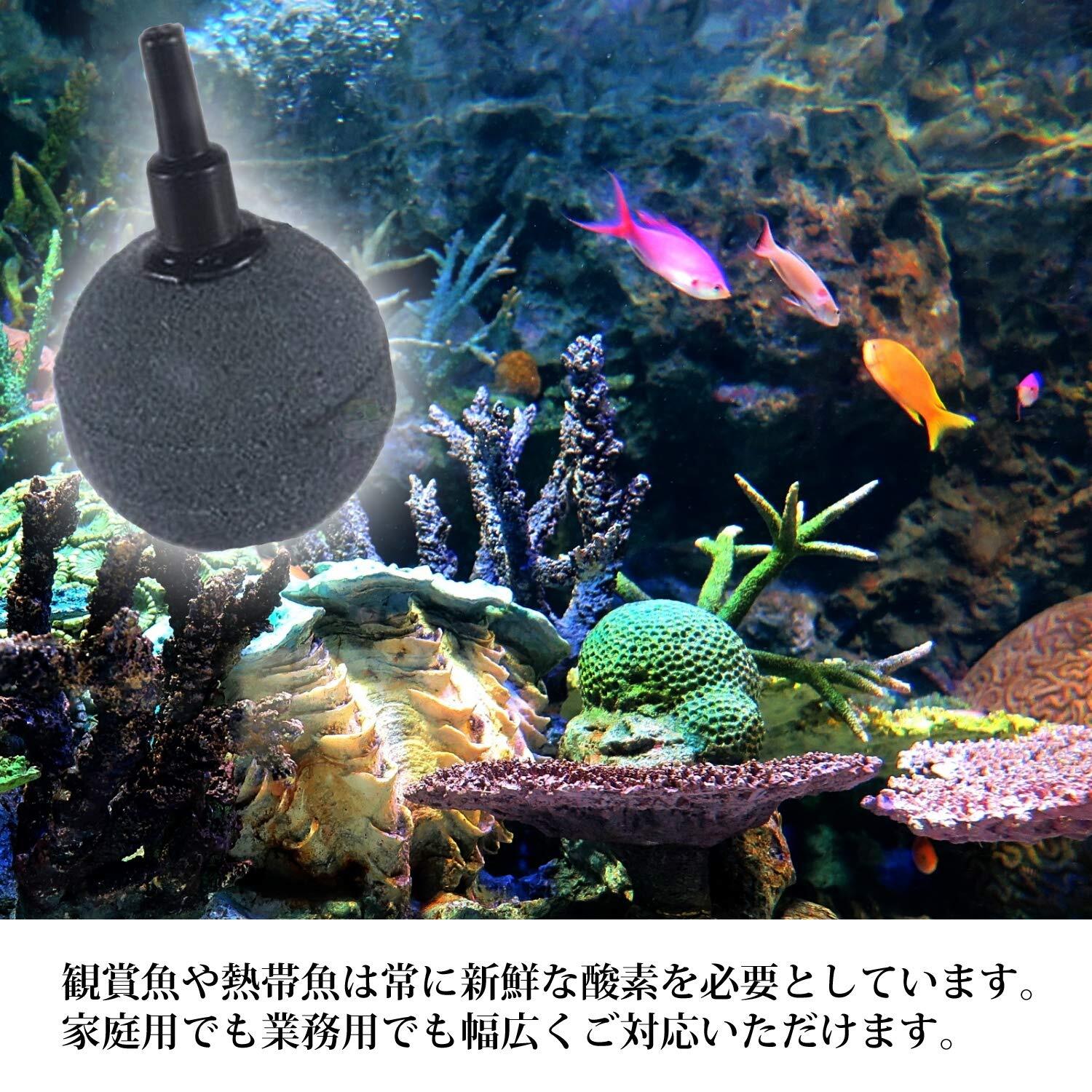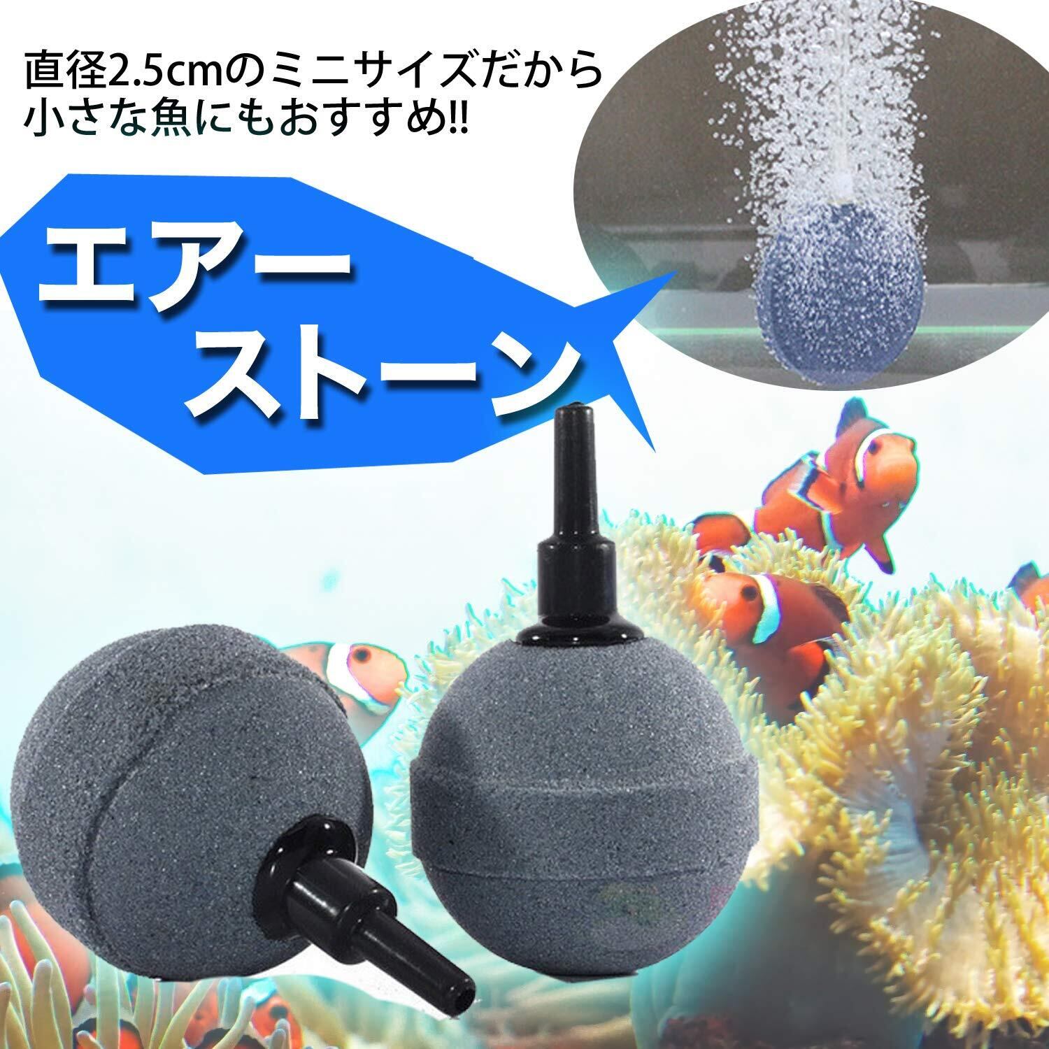 当社のエアーストーン丸型は、内径4mmのチューブに対応し、複数のエアーストーンをコネクターで接続することができます。水槽の美観を損なわないデザインで、簡単に取り付け可能です。水槽用のエアーストーン丸型セットは直径2.5cmの丸いボール形状で、水中で均等に美しい気泡を作り出します。特に熱帯魚や水草の飼育に最適です。