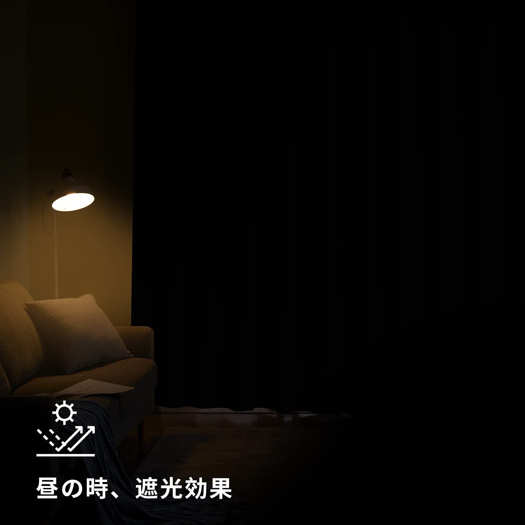 ◆【一級遮光】このカーテンは遮光度が99.99%以上,外からの光をほとんど通さないため、昼間カーテンを閉めたお部屋のなかで相手の顔の表情が分からない程度にまでお部屋を暗くできます。同じ等級であっても、カーテンの明度や色彩によって遮光の度合いが変わります。薄い淡い色は光を通しやすく、濃い暗い色は光を通しにくいです。遮光性を重視される方は濃色をおすすめします。