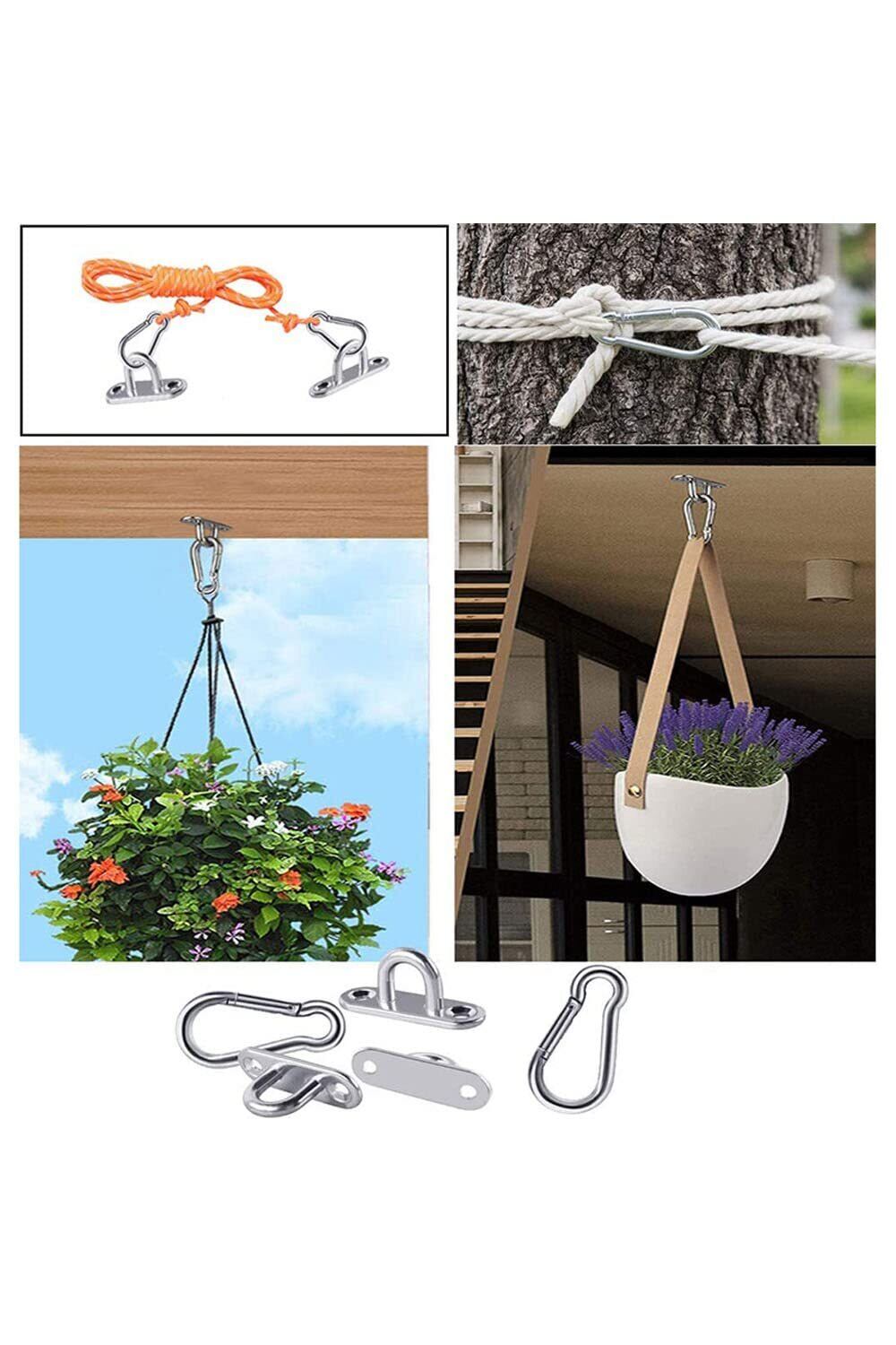 【優れた素材】M5アイプレートはステンレス製で。 カラビナは亜鉛メッキ鉄製です。高品質の天井フックとして、頑丈で耐久性があり、高い耐荷重性を備えています。最大負荷:40kg。すだれ フック錆が出ない、安全で信頼できます。雨の中でも自由に使えます、および搬送能力を向上させます。