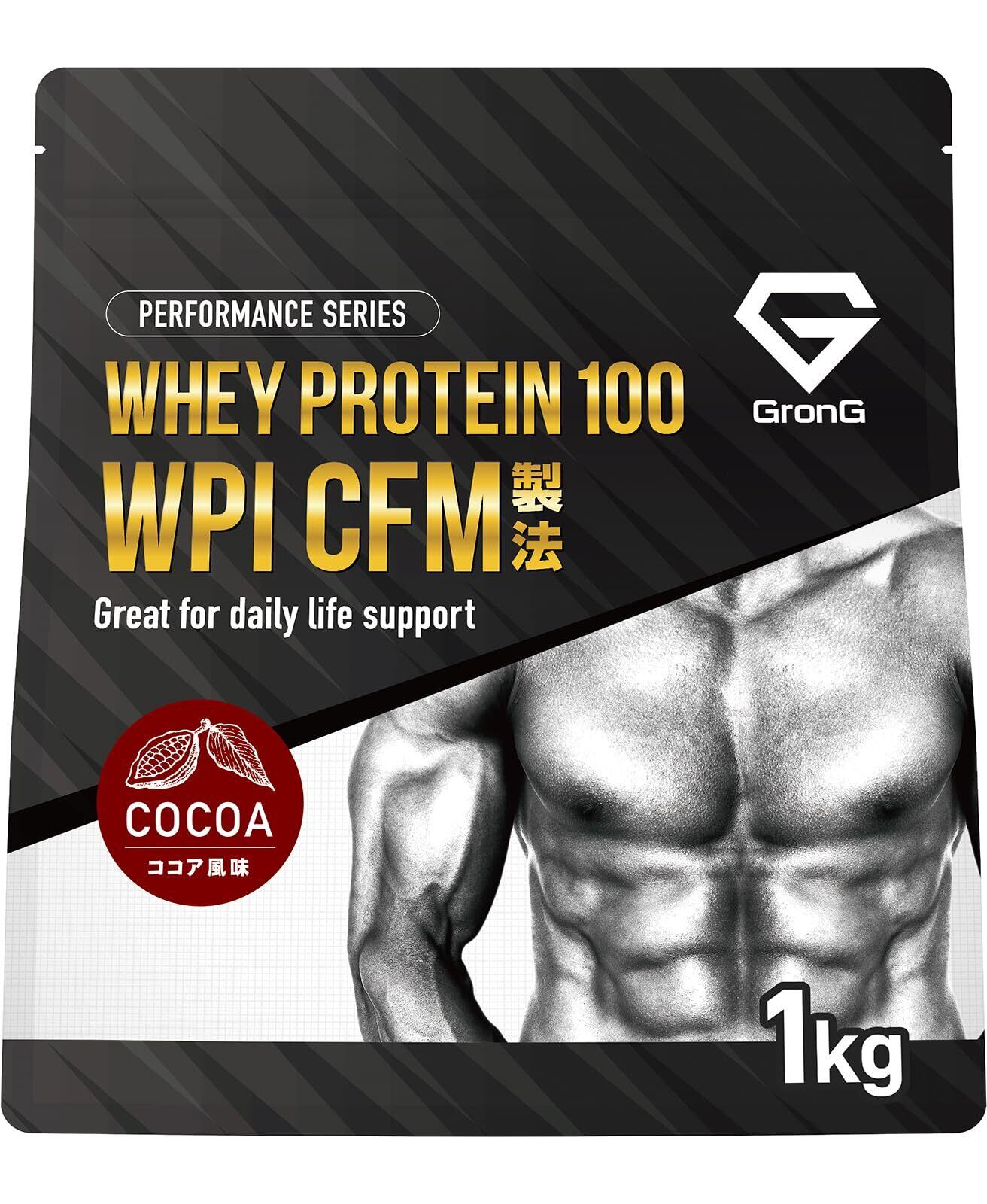グロング WPI プロテイン ホエイプロテイン 1kg ココア風味 CFM製法 ビタミン11種配合 国内製造 GronG