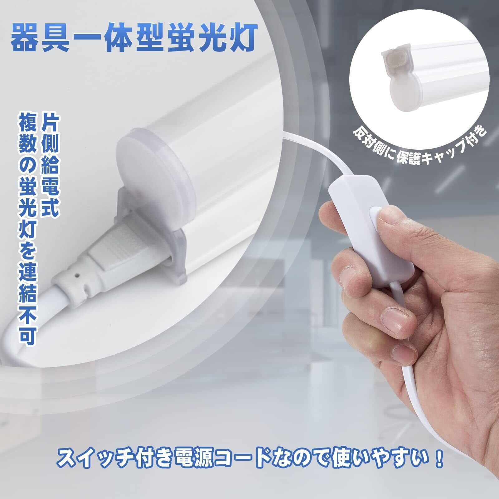 【使いやすい】:スイッチ付き電源コードなので使いやすい。取り付けた後、ACプラグをライトの電源ソケットに差し込んで、電源を入れると、すぐ点灯します。注意:片側給電式で、複数の蛍光灯を連結不可。