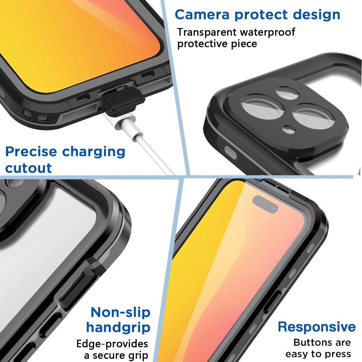 【IP68認定防水】水中完全密閉IP68認定でiPhone 15防水ケースと互換性があり、水深6.6~10フィート/2~3mに30分間沈めるように設計およびテストされており、水中で写真を撮ることができます。