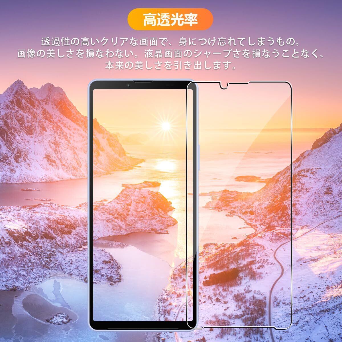 【9H強度&飛散防止】対応 Xperia 10V SO-52D SOG11 強化ガラス 保護フィルムは日本旭硝子素材を採用します。 落下、スクラッチ、衝突、衝撃に高い耐久性があります 衝撃を最小限に抑えて画面の破損を抑え。カッターなどの鋭利なものを当たってもキズが付きにくくて高い強度を持ち表面硬度9Hが特徴です。特殊な飛散防止設計により、万一割れてしまった際にも飛散することなく、高い安全性を実現します。