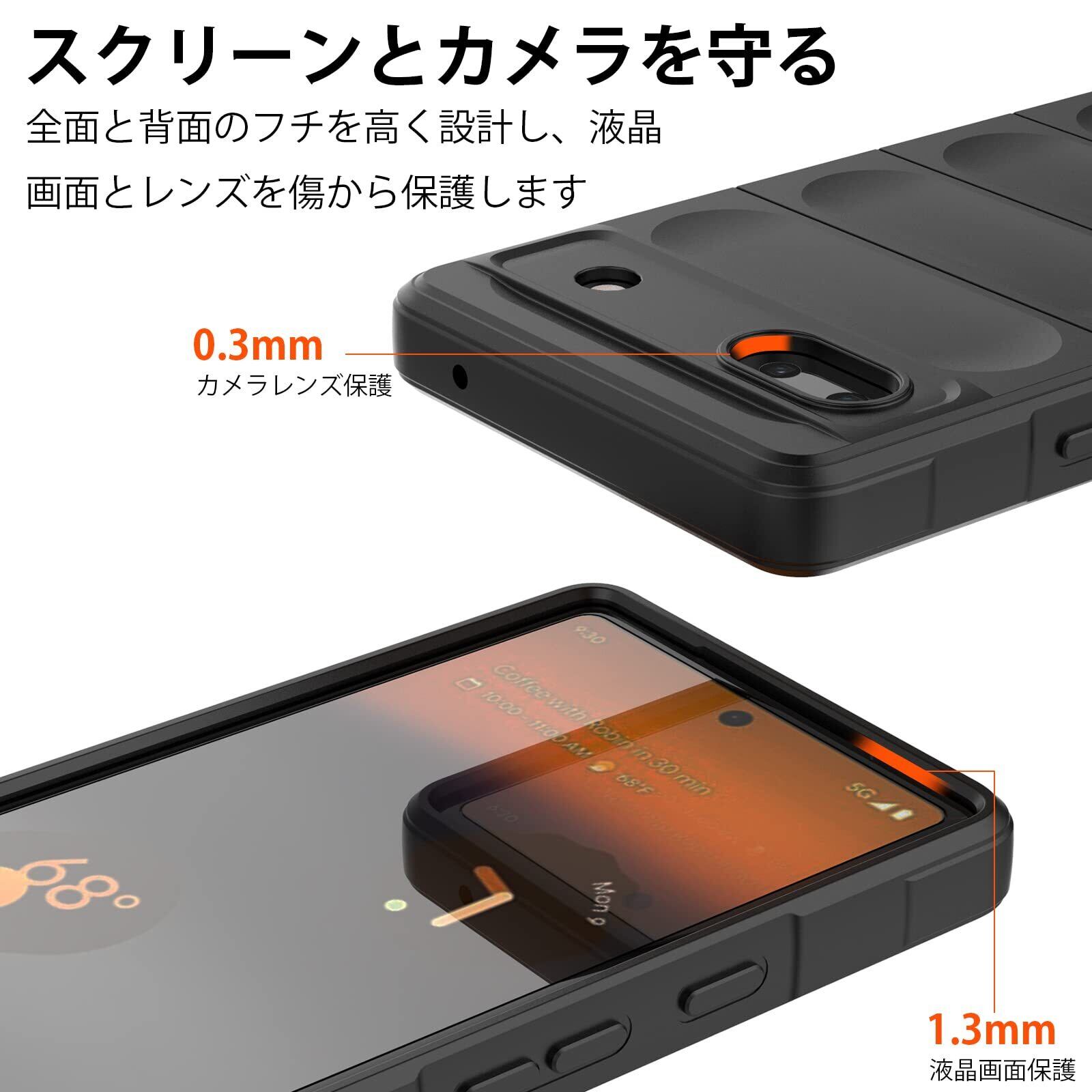 【全面保護】カメラレンズとディスプレイより Google Pixel 6A ケースの保護リブが高いため、平らな場所においても、液晶画面とカメラレンズに直接触れることがなく。またケースの四隅部分にはクッションを搭載していて、スマホを落としてしまっても衝撃を最小限に抑えるケース。側面は滑り止めマットな設計で、グリップ感が有りしっかりと手に馴染みます。
