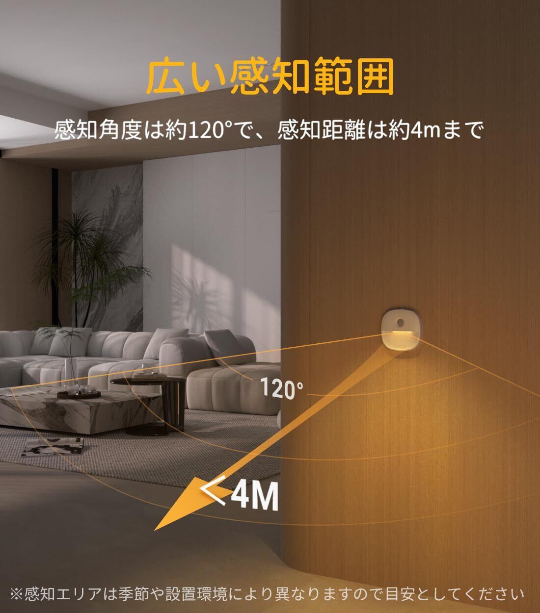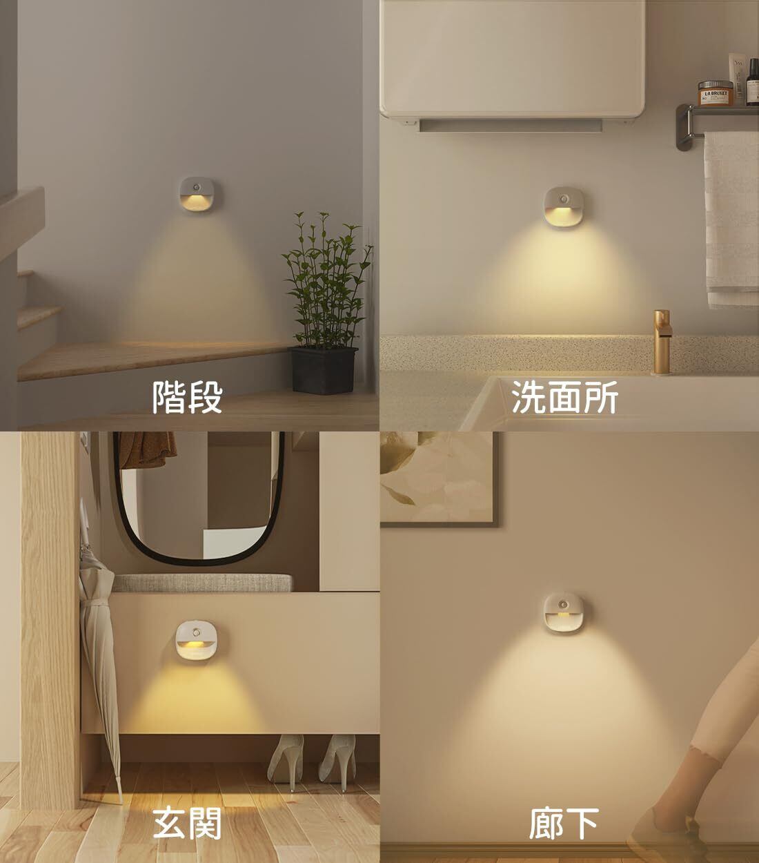 【幅広いシーンで活躍】廊下、階段、夜間のトイレ、玄関、キッチン、リビング、倉庫などに設置して足元を照らすライトとして活躍し、夜間つま先をぶつけることはもうありません。寝室のベッドサイドなどに設置してナイトライトや常夜灯としても寝るを邪魔しないです。