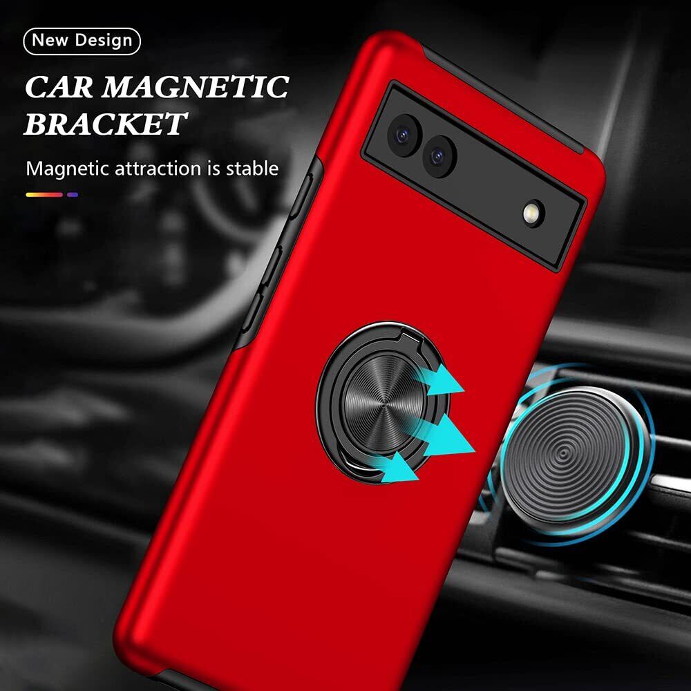 スマホケース Google Pixel 6A 用 ケース リング付き 耐衝撃 pixel6a ケース リング googlepixel6a 衝撃 携帯ケース カバー スタンド付き レッド