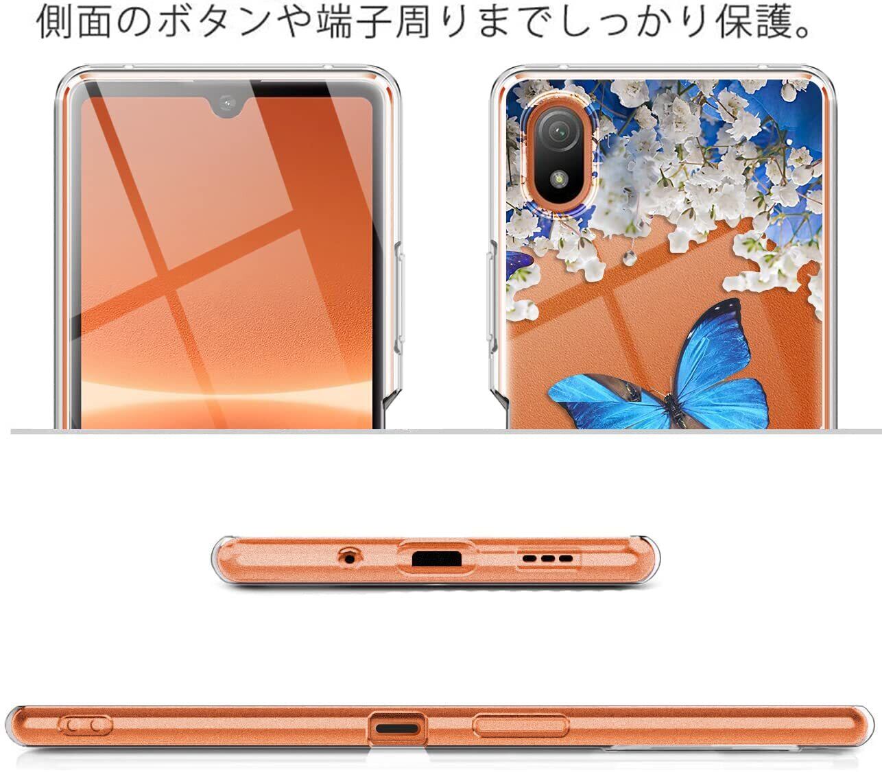 Xperia 1 IV ケース SO-51C ガバー クリア 押し花風 スリム TPU 薄型 耐衝撃 透明 擦り傷防止 黄変防止 ストラップホール付き 可愛い 青い蝶 花柄 エクスぺリア 1 IV SOG06 ケース ブルーバタフライ